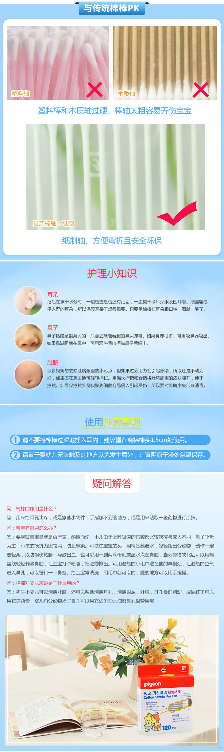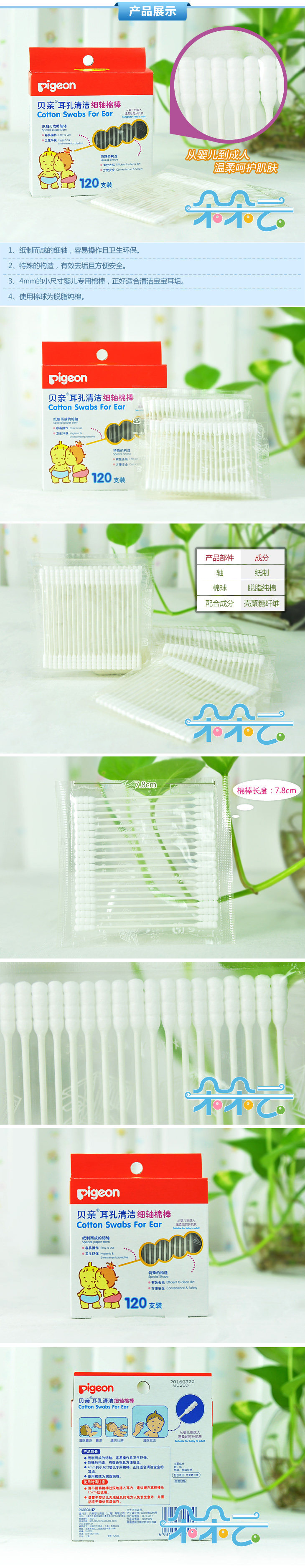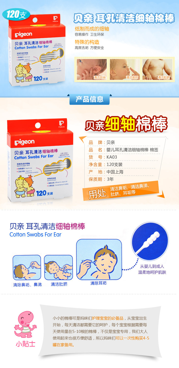 Pigeon, детские гигиенические ватные палочки для носа, хлопковые хлопковые шарики, 120 шт