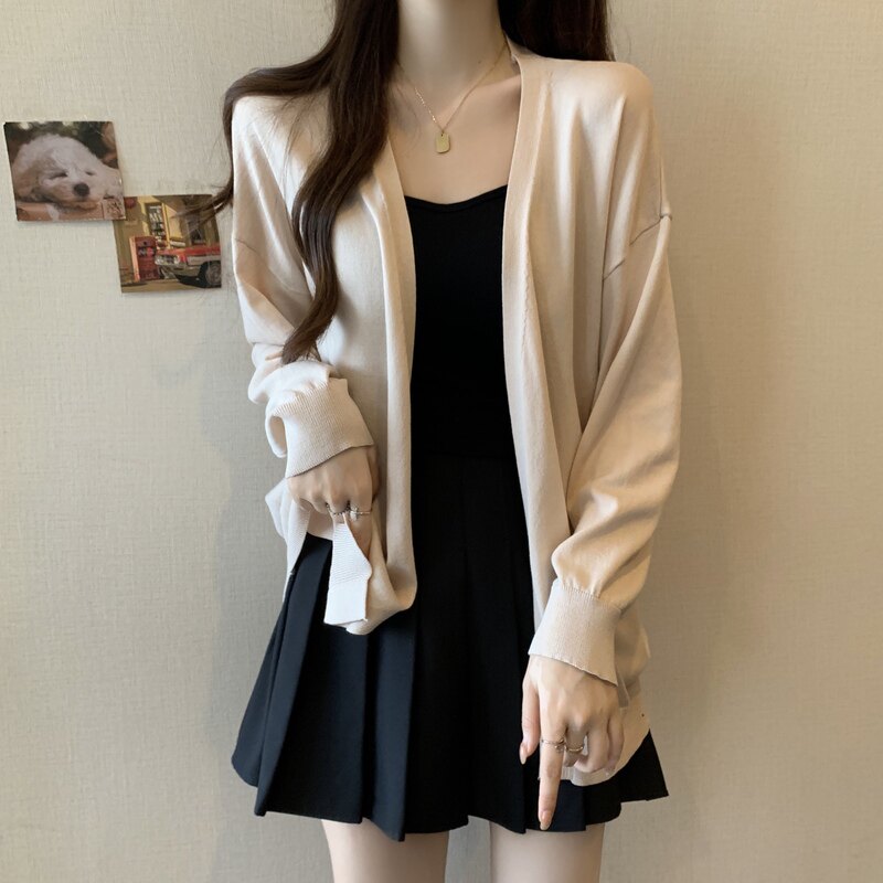 Трикотажный весенний кардиган, куртка, длинный свитер, большой размер, подходит для полных девушек, оверсайз, средней длины, V-образный вырез