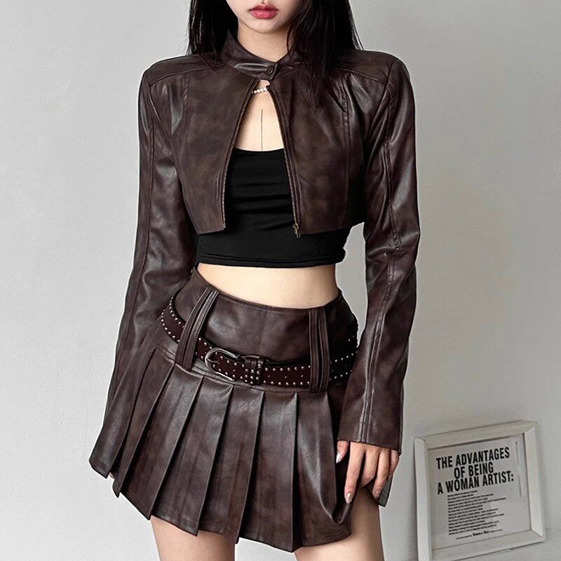 Ретро короткая дизайнерская цветная полиуретановая куртка, в американском стиле, тренд сезона