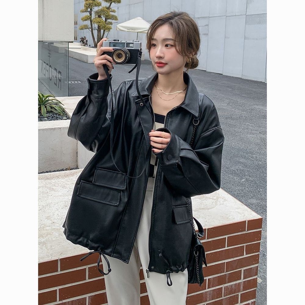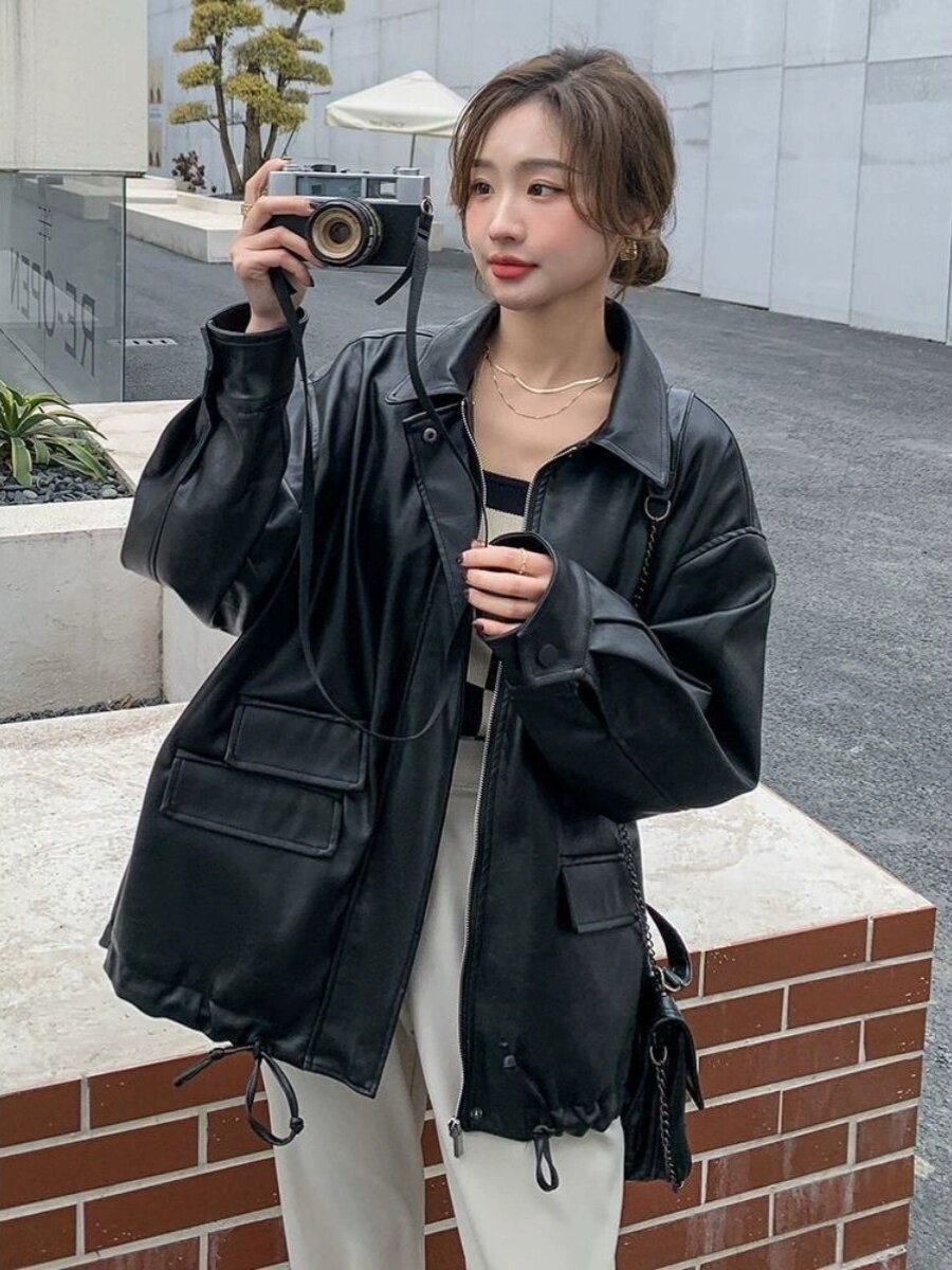 Короткая осенняя черная полиуретановая куртка, подходит для подростков, в американском стиле