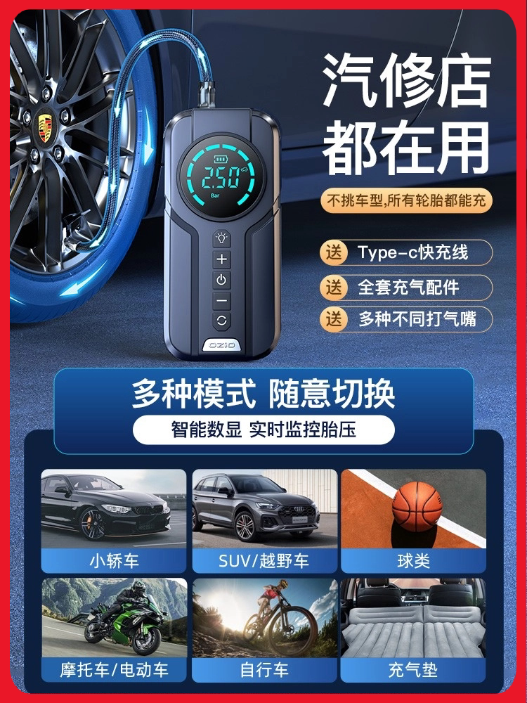 Портативный воздушный насос для автомобиля, электрическое беспроводное колесо, автоматические шины