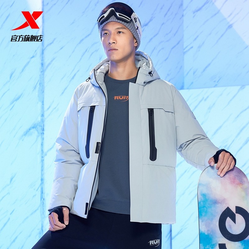 Xtep, мужской демисезонный пуховик, удерживающая тепло бархатная водонепроницаемая куртка с капюшоном, утиный пух