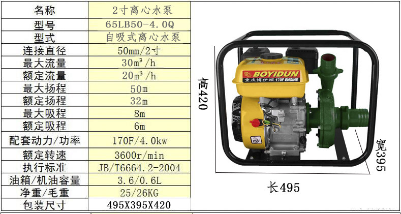 Центробежный насос Чунцинг Бензиновая насосная машина Gao Yang Chenggong Полевой ирригационный насос от 2,5 дюйма до 2 дюймов