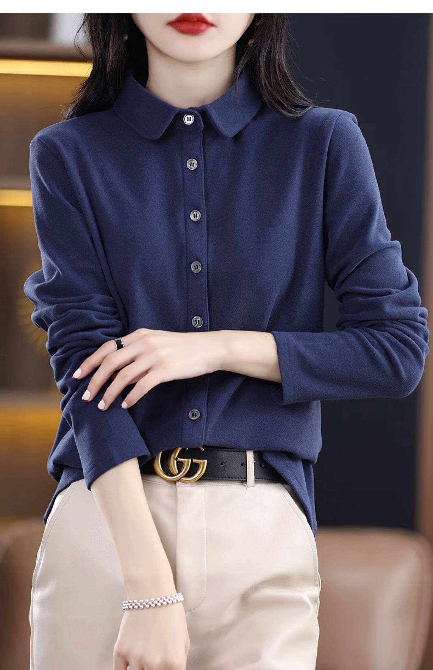 Рубашка, демисезонный лонгслив, базовая утепленная удерживающая тепло футболка для отдыха, воротник поло, в корейском стиле