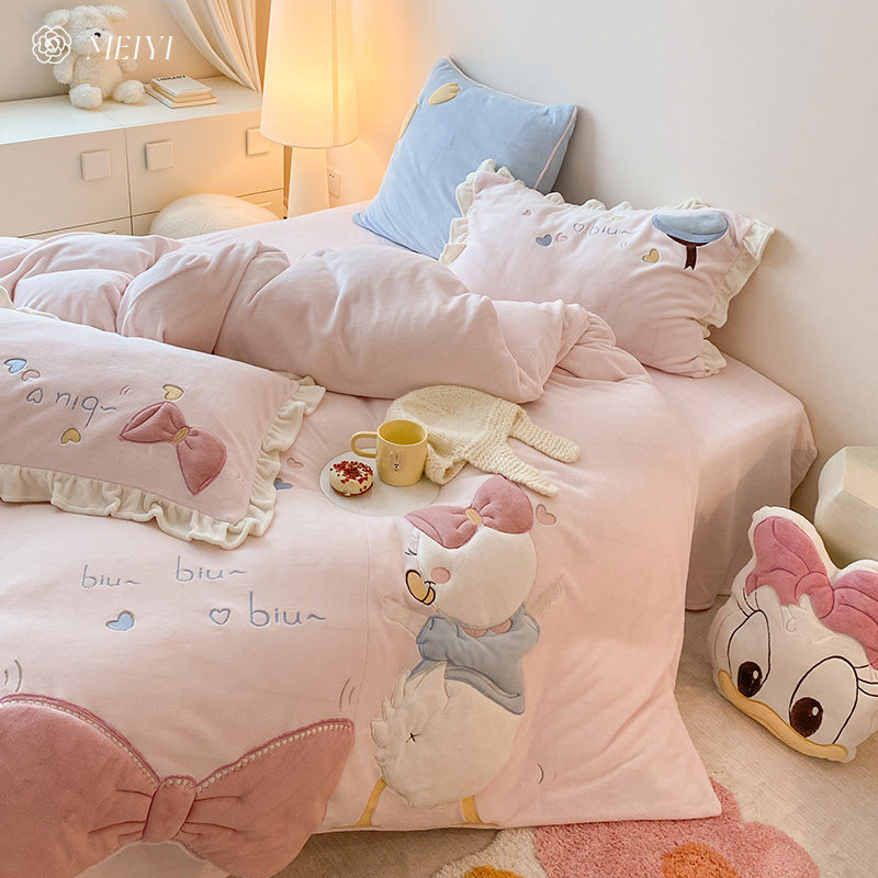 美谊 Милый зимний комплект, флисовый пододеяльник, удерживающее тепло покрывало, увеличенная толщина, 4 предмета