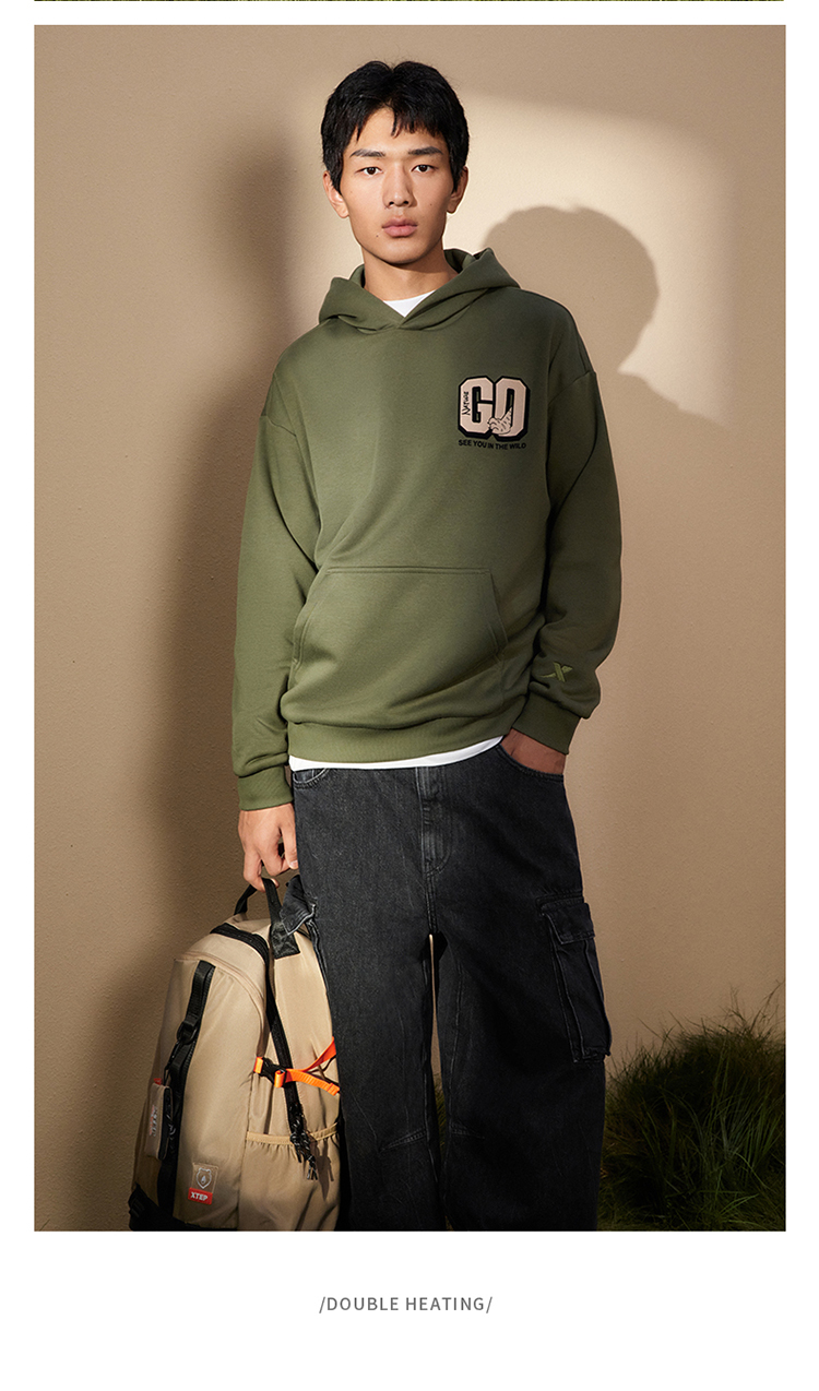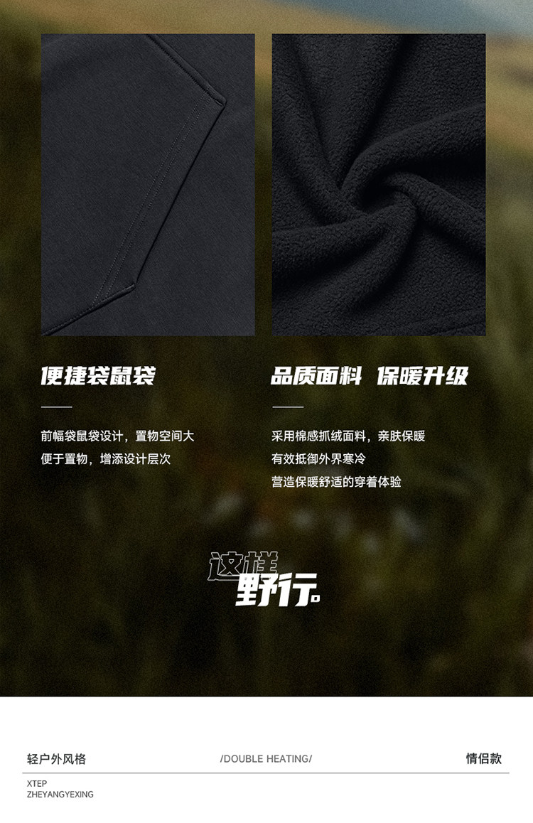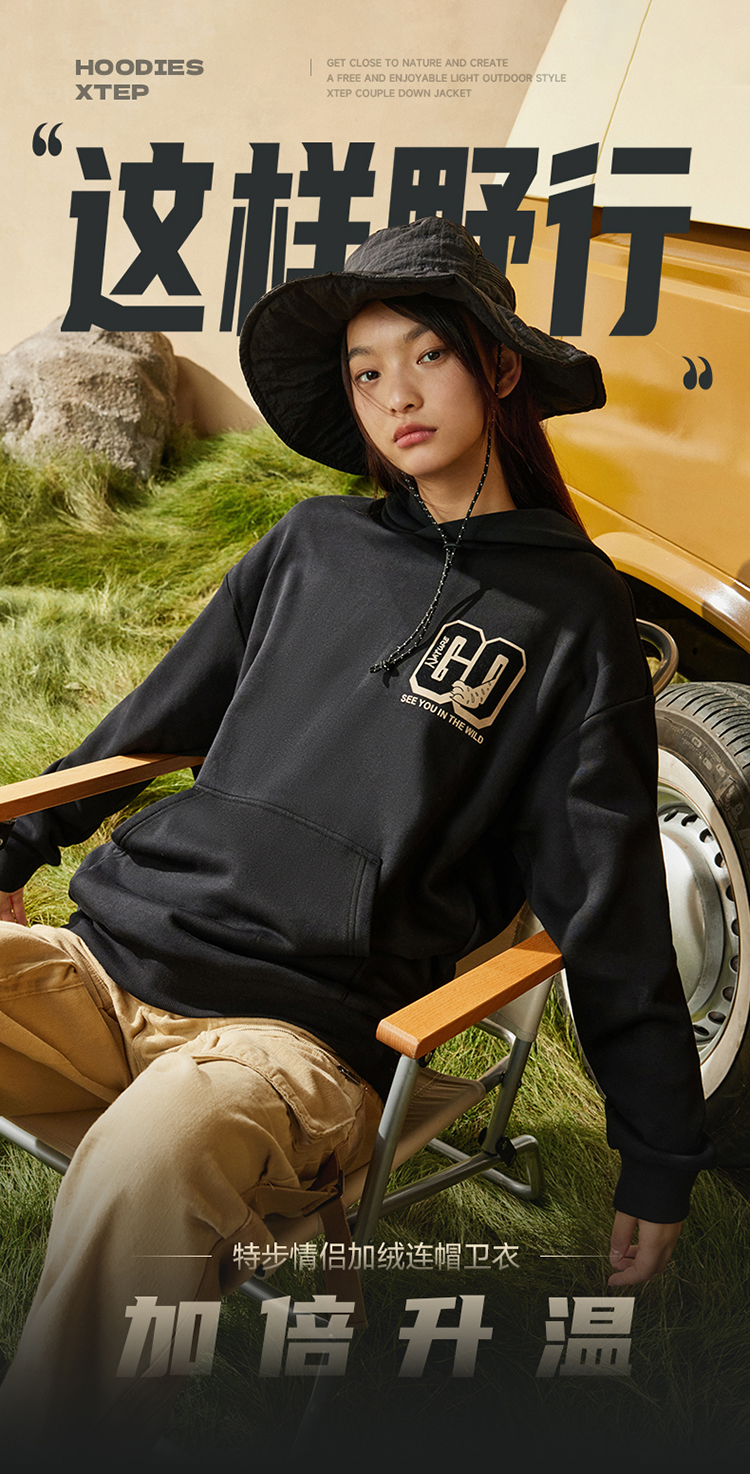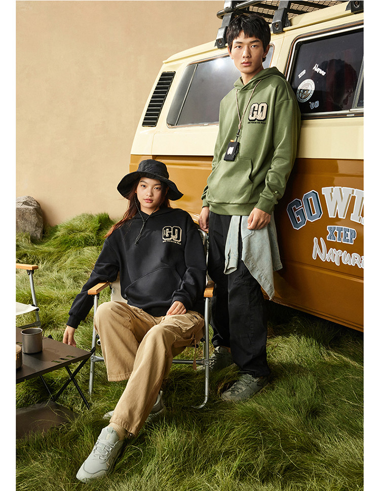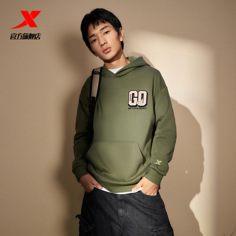 Xtep, толстовка с капюшоном подходит для мужчин и женщин, утепленный удерживающий тепло лонгслив, трикотажные нарукавники для влюбленных, круглый воротник