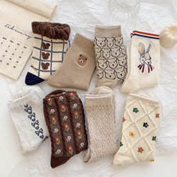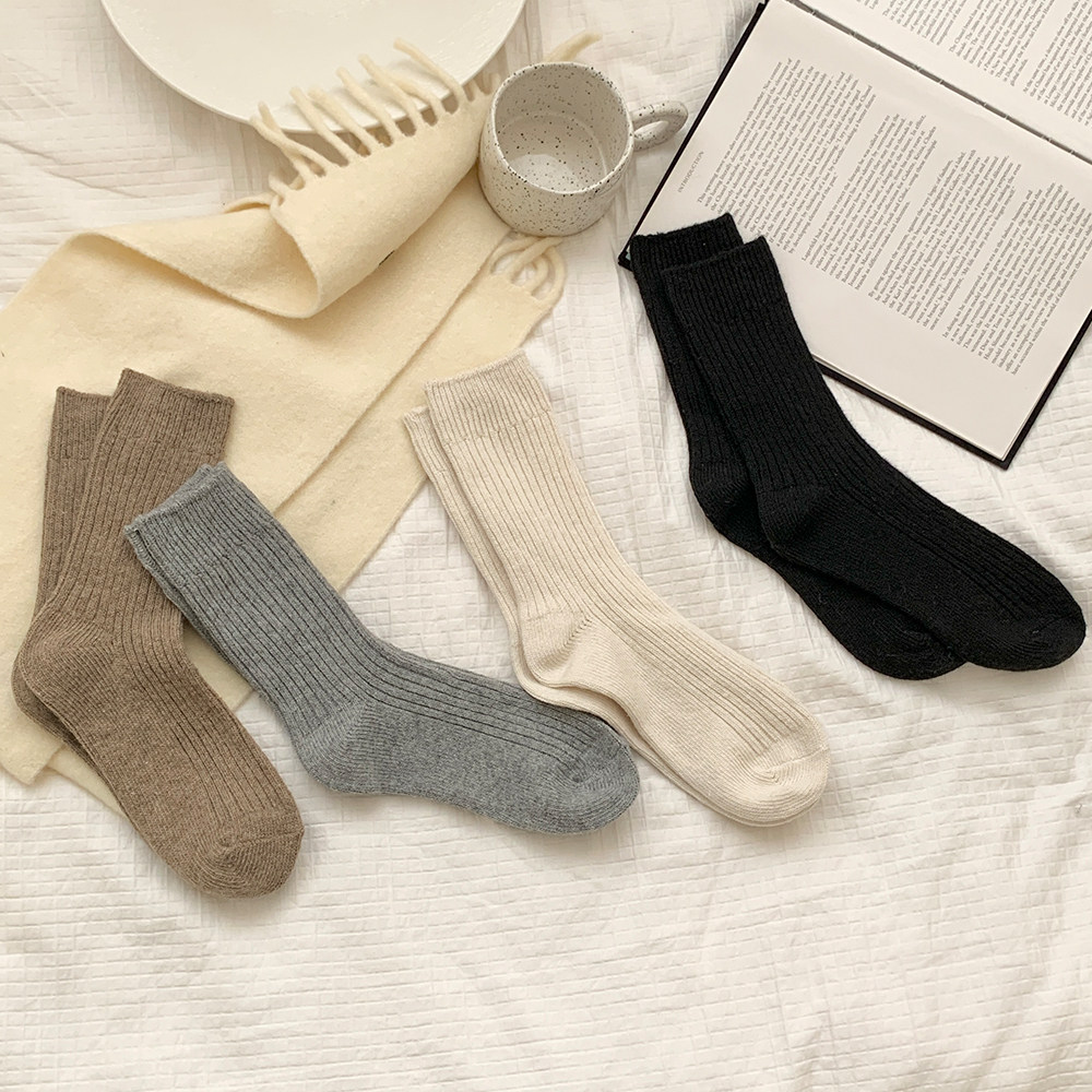 Шерстяные носки, демисезонные флисовые удерживающие тепло японские зимние гольфы, средней длины
