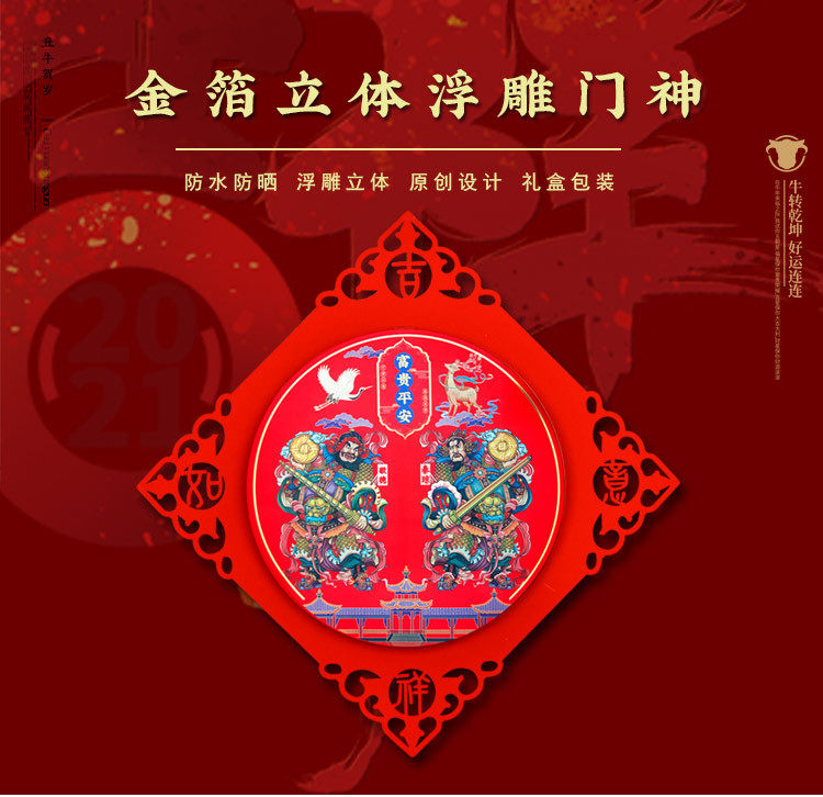 Одиночные дверные шнурки прикрепляют золотую фольгу Трехмерное облегчение, Цинь Шубао, Чи Гонг Ву Гонгву, здание здания против дверей бог Цинь Ционгдде