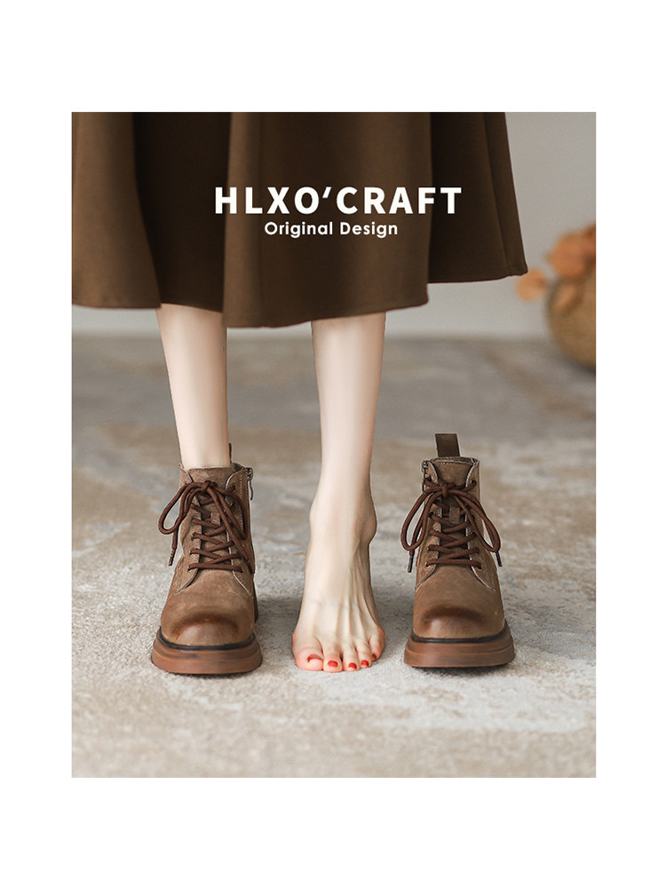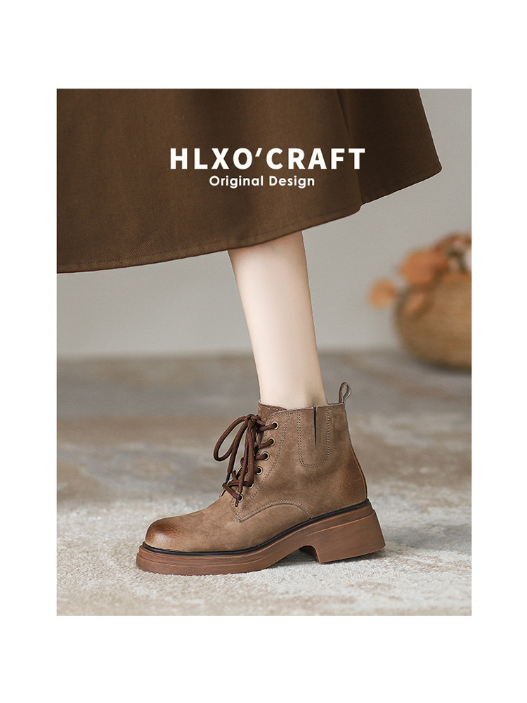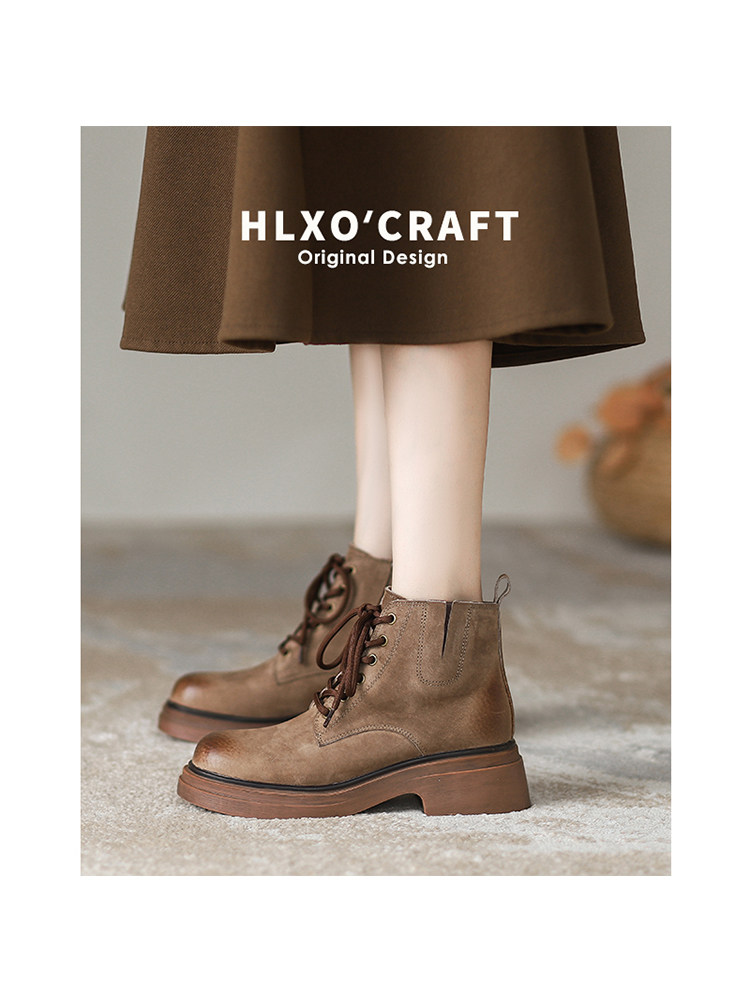 Martens, модные демисезонные короткие сапоги на платформе, ботинки, из натуральной кожи