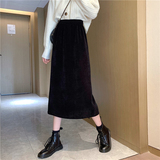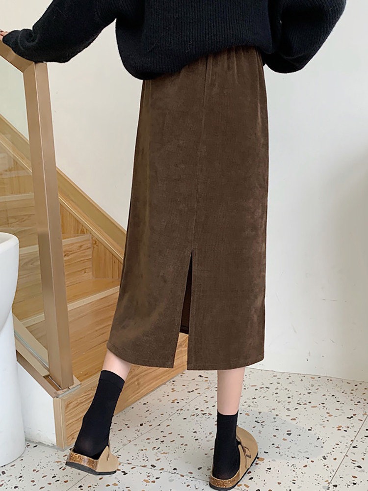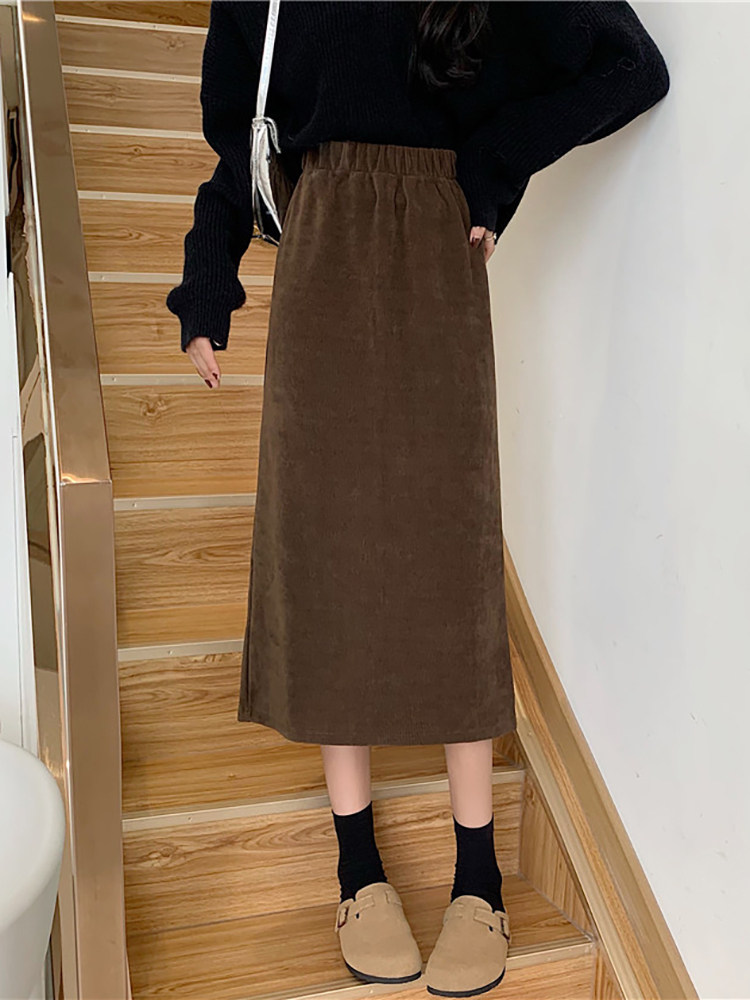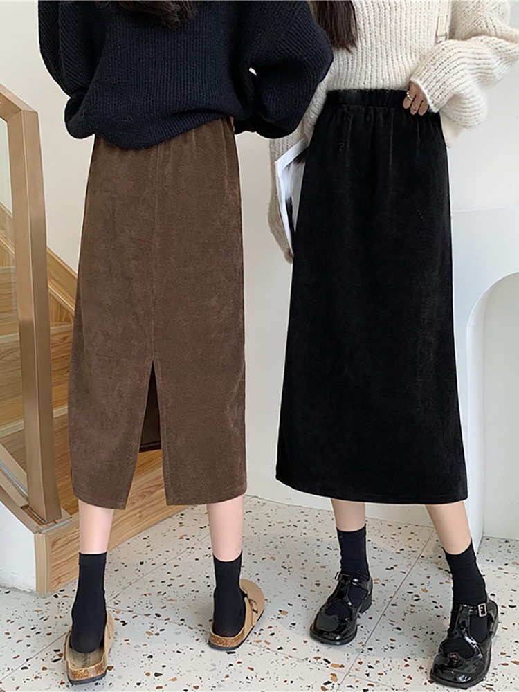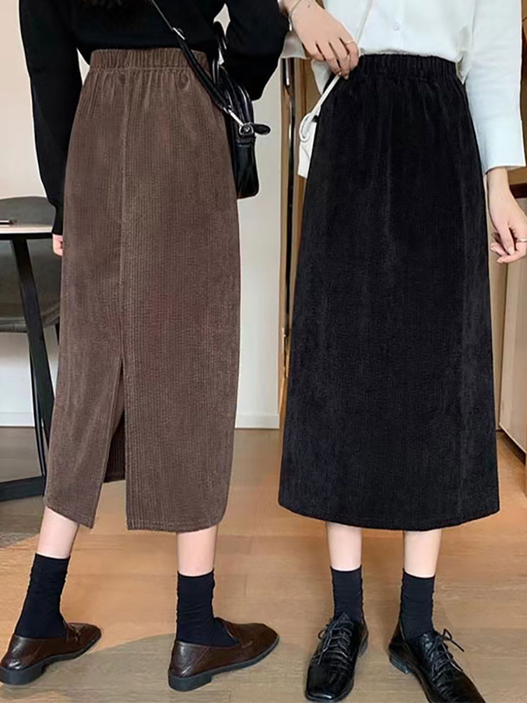 Цветная вельветовая демисезонная приталенная длинная юбка, коллекция 2023, А-силуэт, эластичная талия, средней длины, с акцентом на бедрах