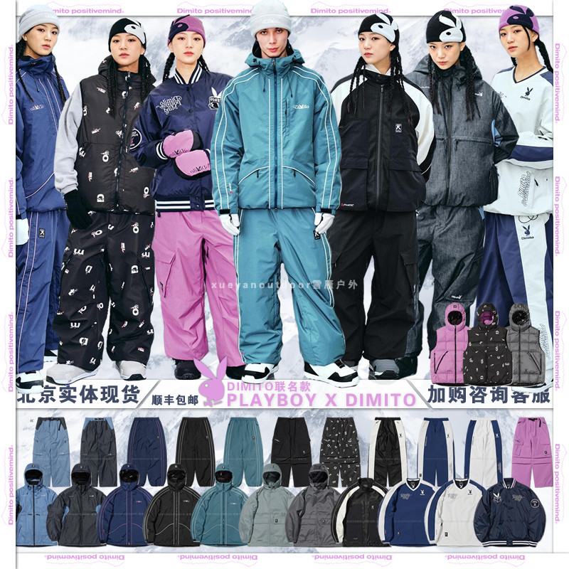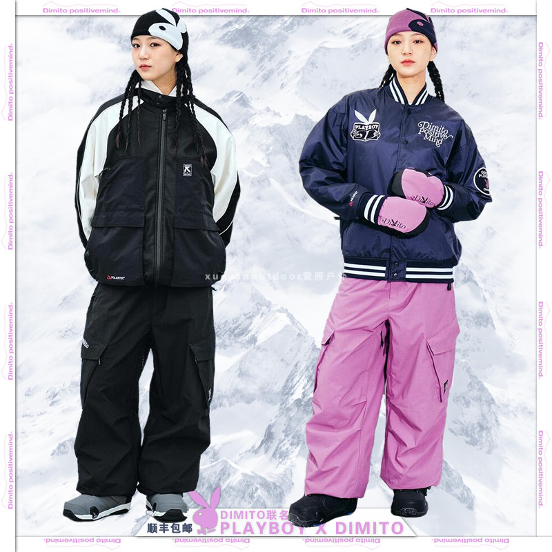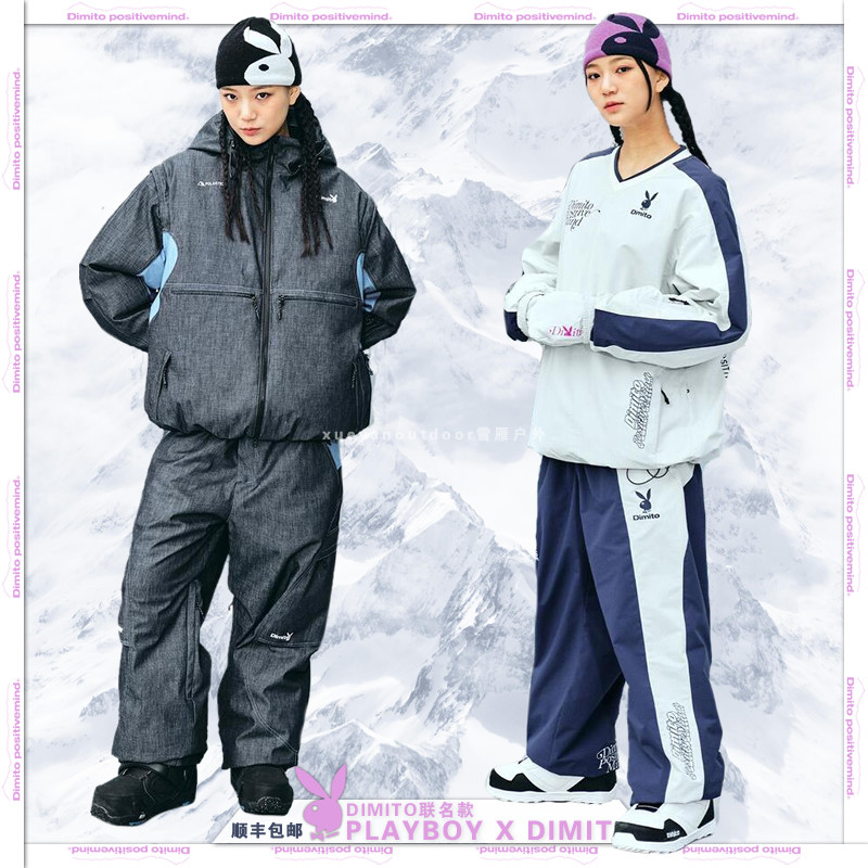 2324Playboy x Dimito Объединенная лыжная куртка снежные брюки мужские и женские костюмы с ветросонепроницаемым костюмом