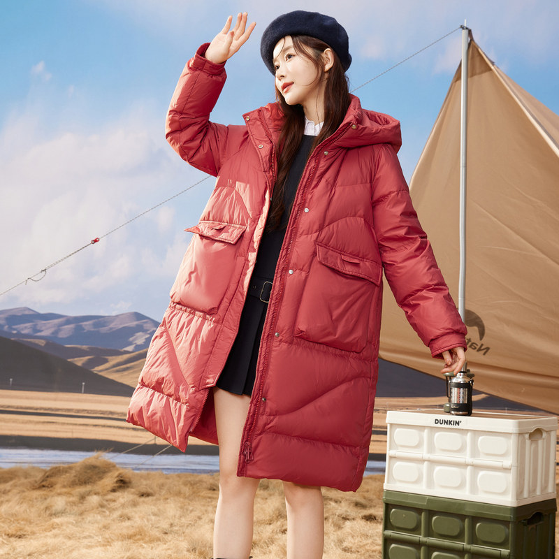 Демисезонный красный пуховик, удерживающие тепло дорожные наколенники, свободный крой