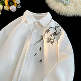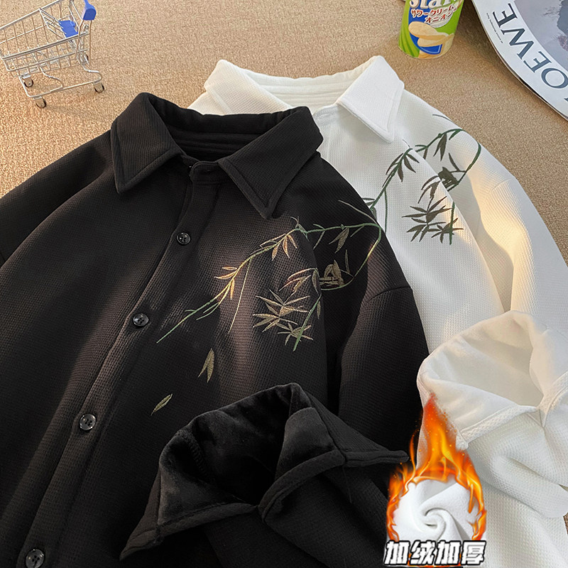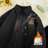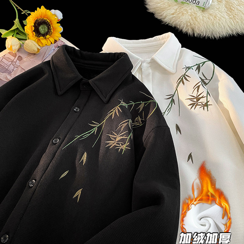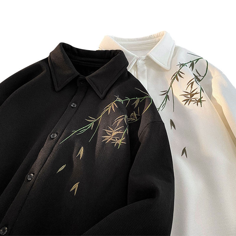 Лонгслив, демисезонная утепленная рубашка, дизайнерская куртка, китайский стиль, тренд сезона, изысканный стиль, с вышивкой