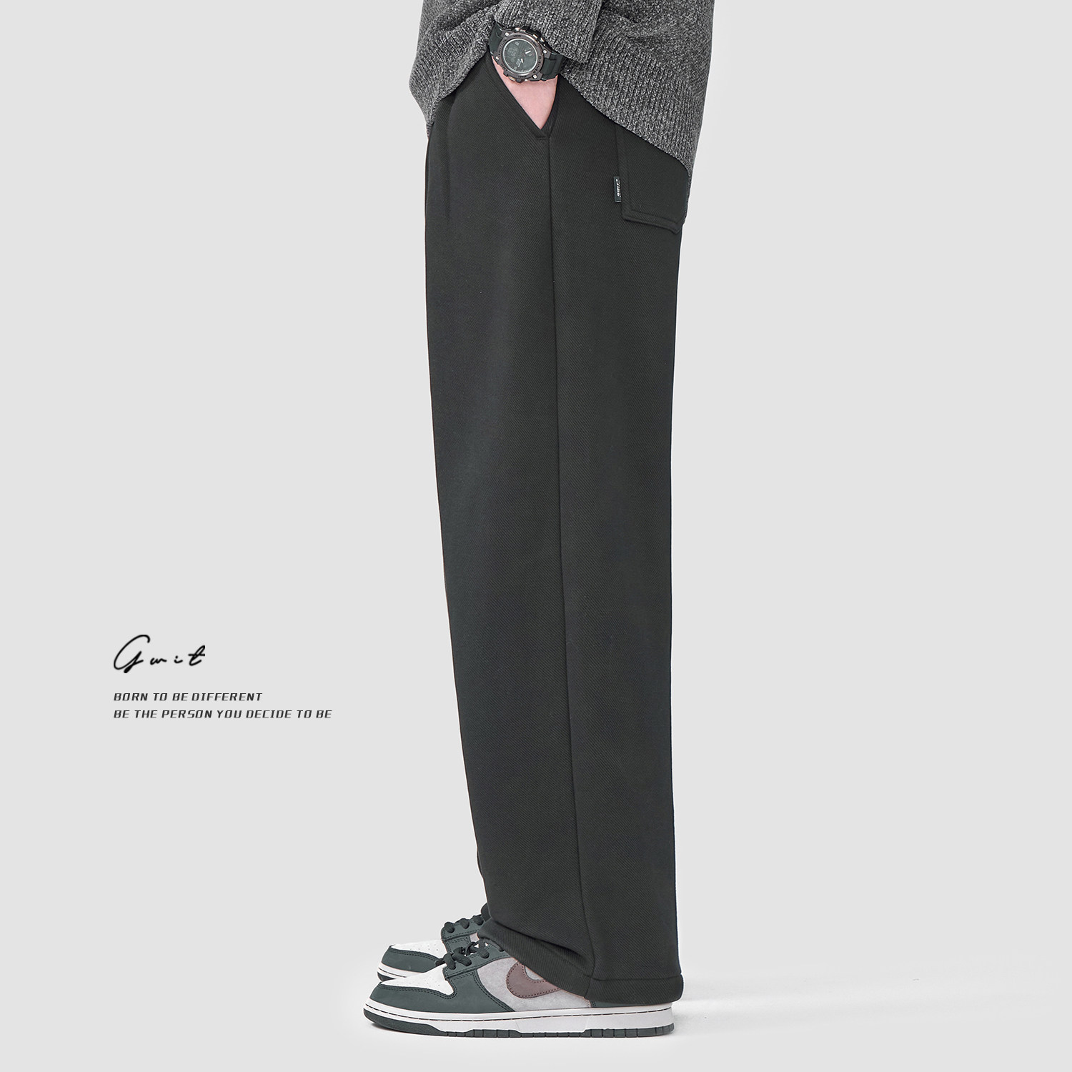 GWIT Бархатные зимние удерживающие тепло утепленные штаны, свободный прямой крой