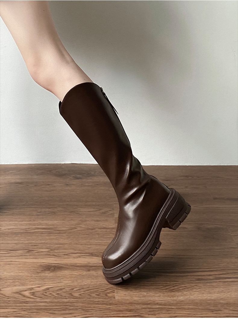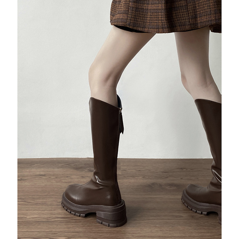 南在南方 Коричневые летние высокие высокие сапоги на платформе в английском стиле, в британском стиле, по фигуре