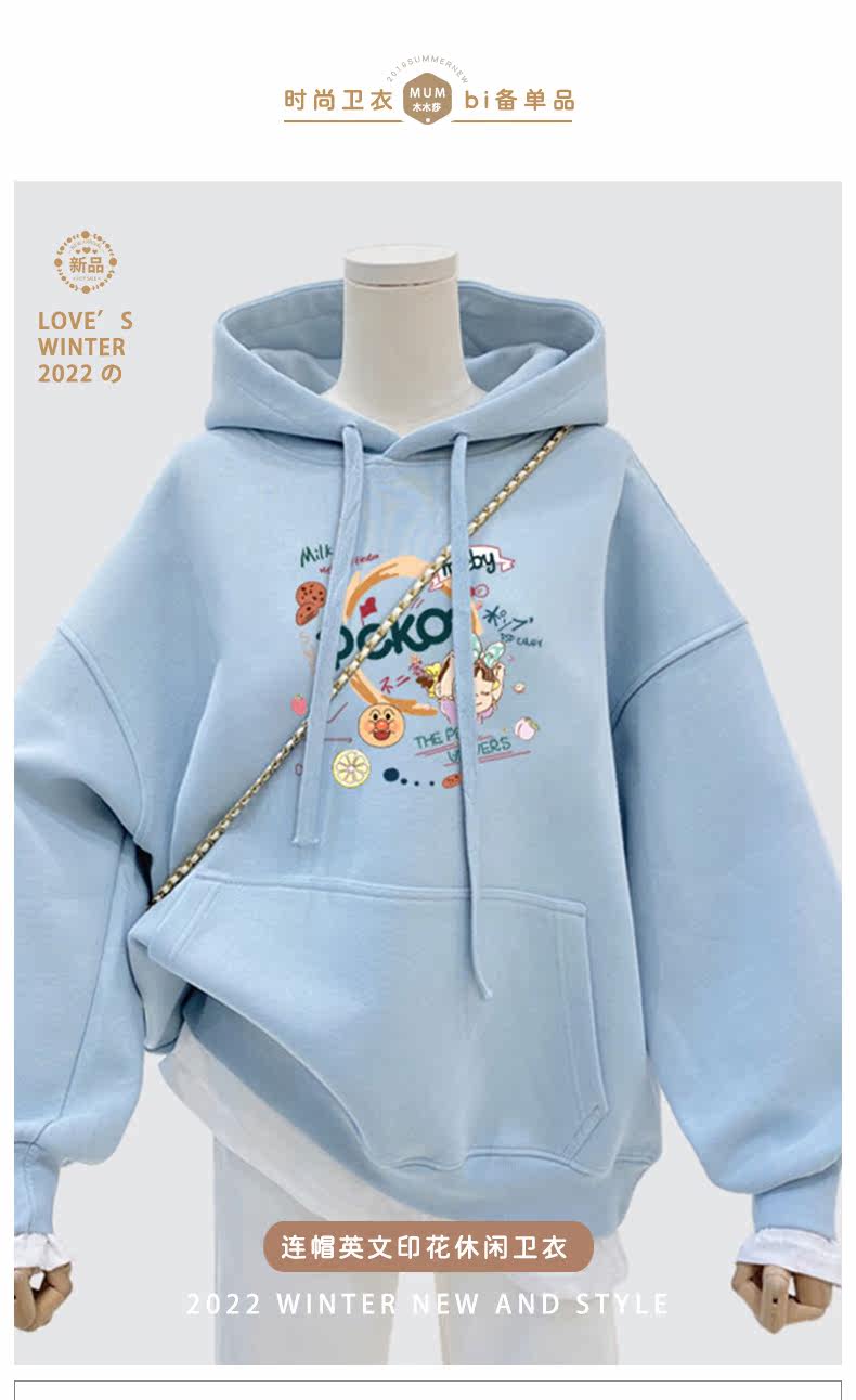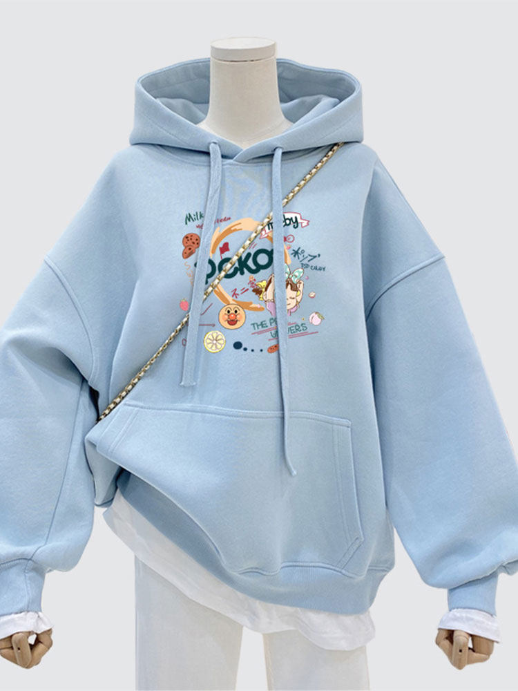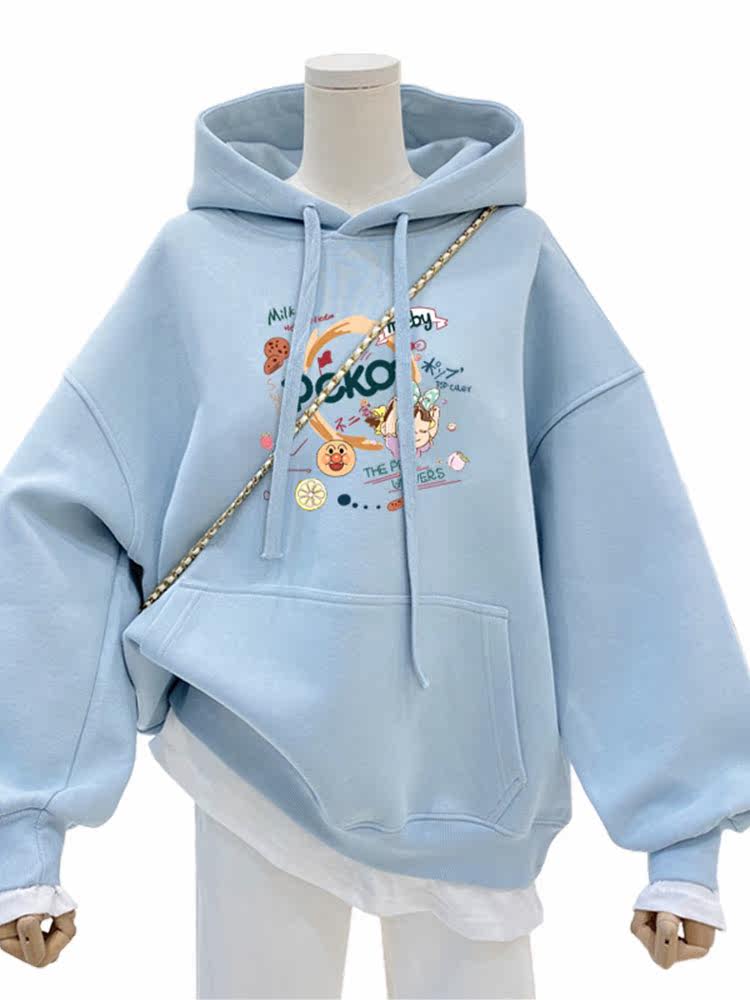 Синяя мультяшная толстовка с капюшоном, демисезонная утепленная куртка