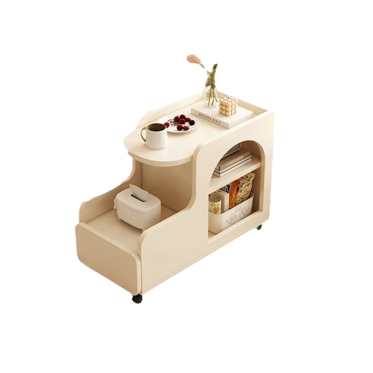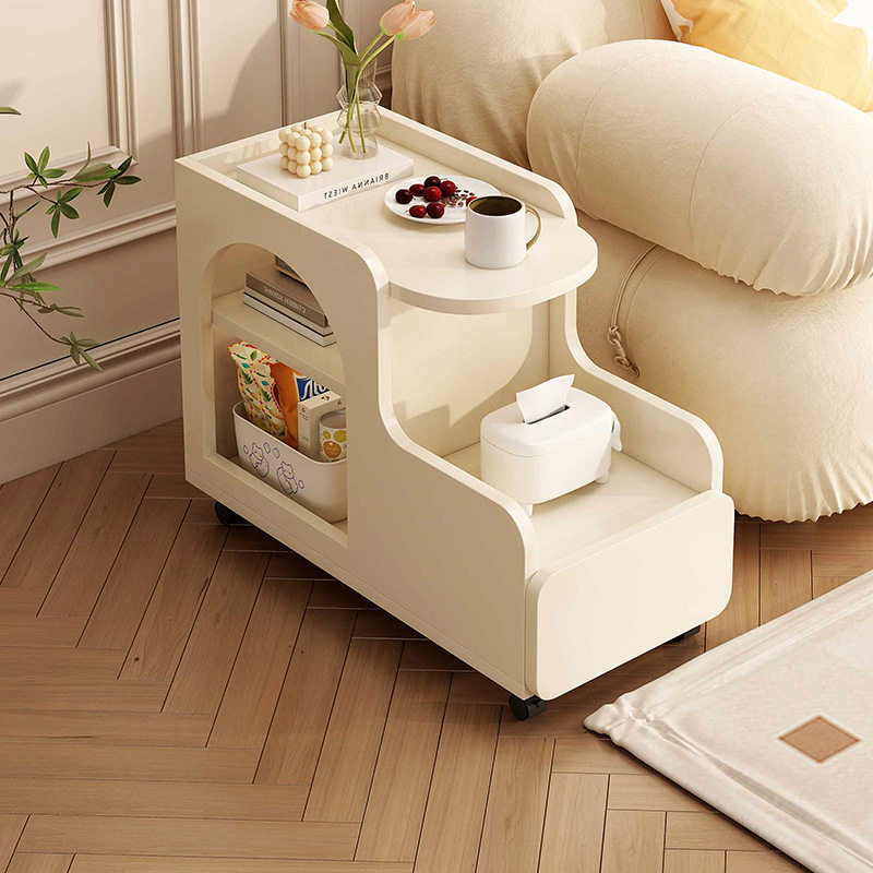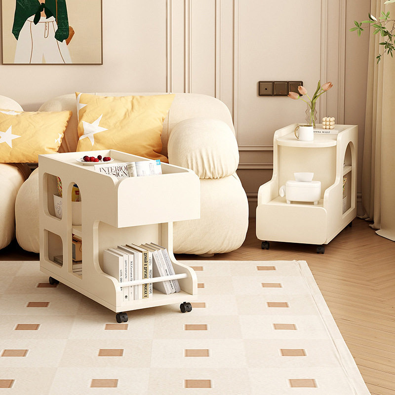 Диван -боковой шкаф Кремовый ветер может переместить небольшую тележку с небольшой тележкой, гостиная креатив с колесным столиком из колесного чая.