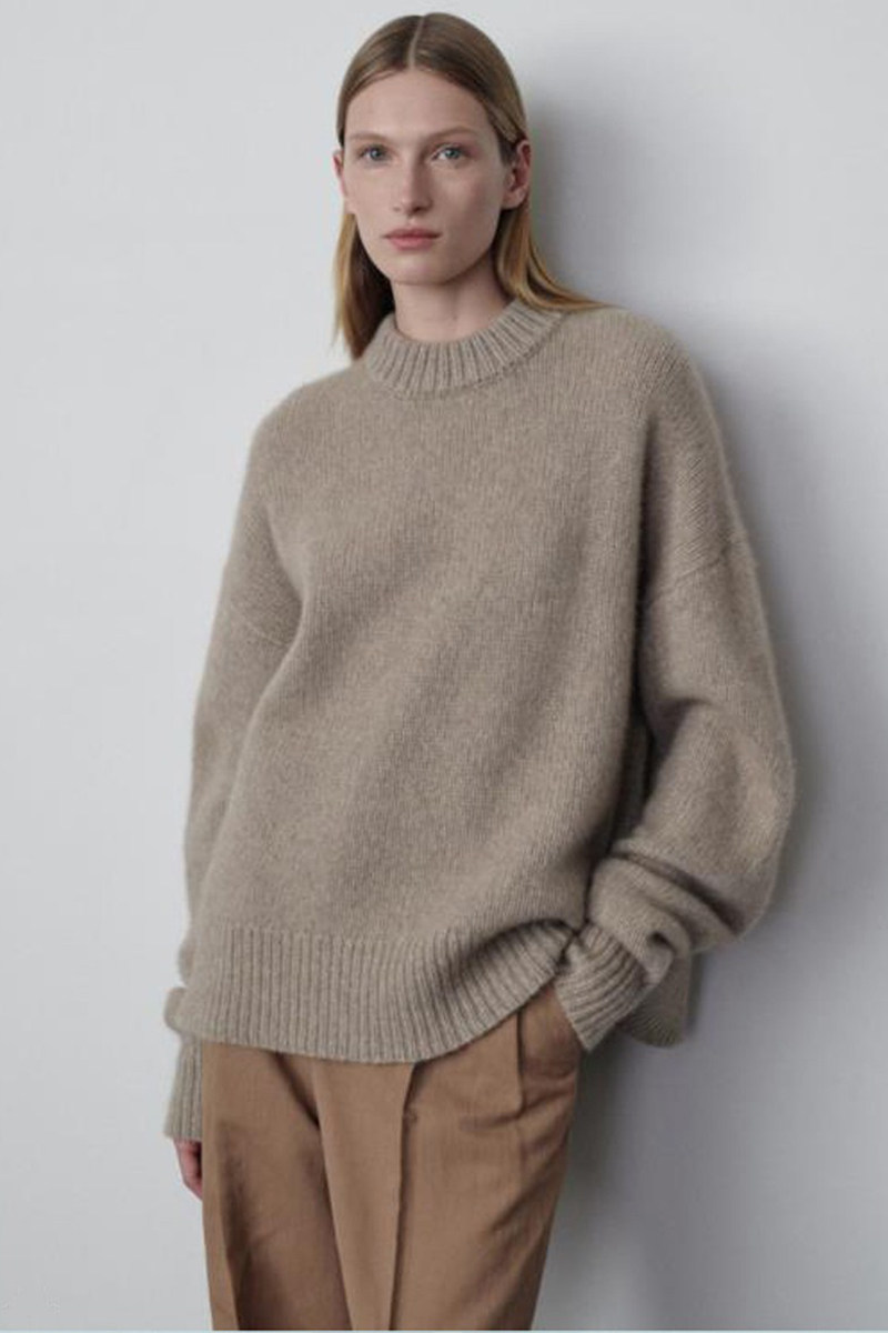 Демисезонный минималистичный трикотажный свитер, высокий воротник, свободный крой