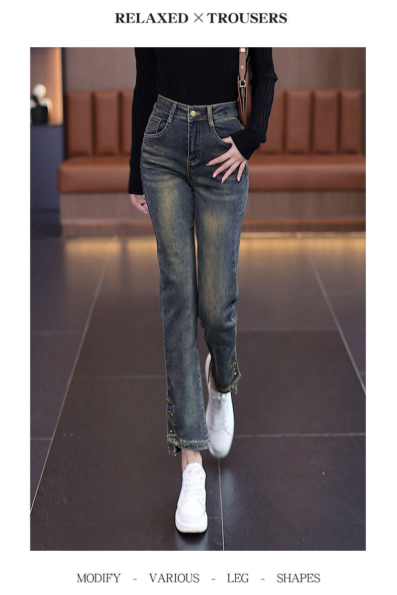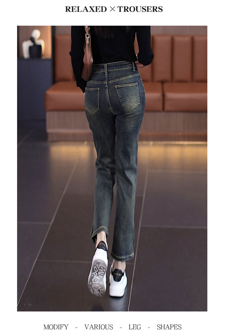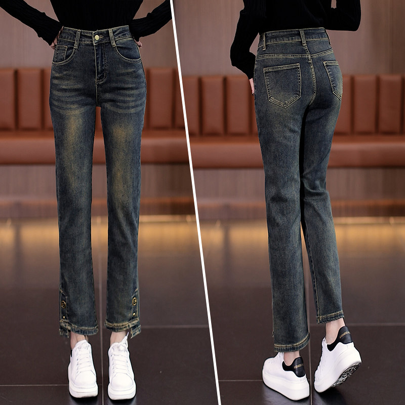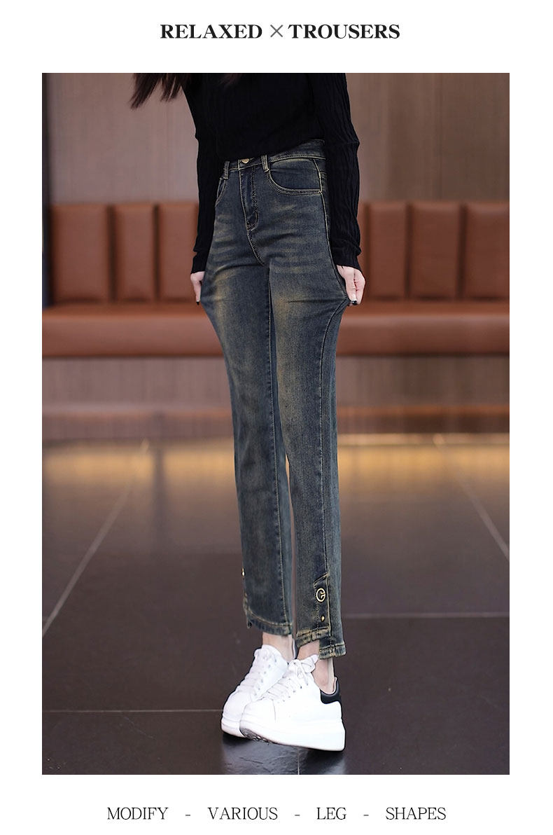 Джинсы, осенние утепленные штаны, 2025 года, свободный прямой крой, подходят для подростков, высокая талия