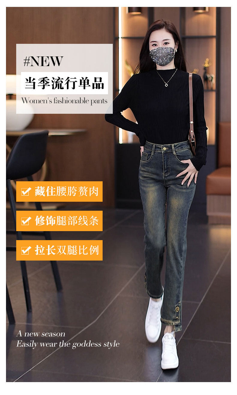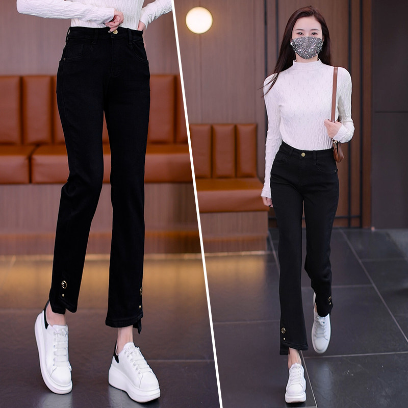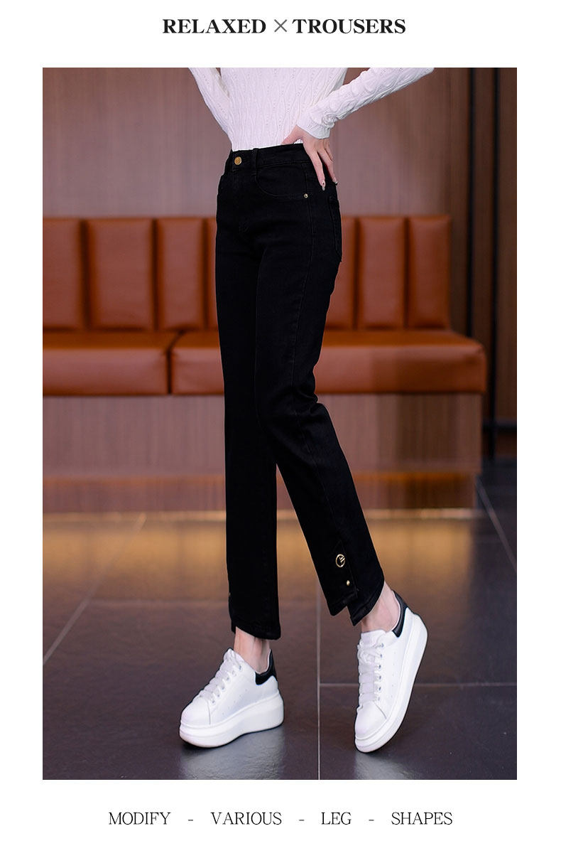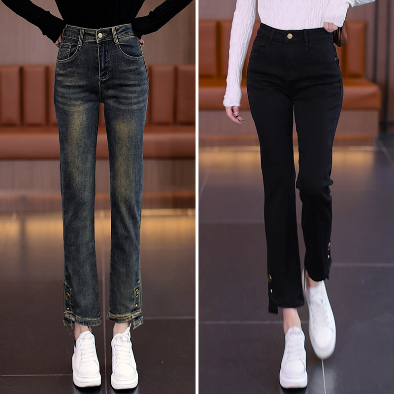 Джинсы, осенние утепленные штаны, 2025 года, свободный прямой крой, подходят для подростков, высокая талия