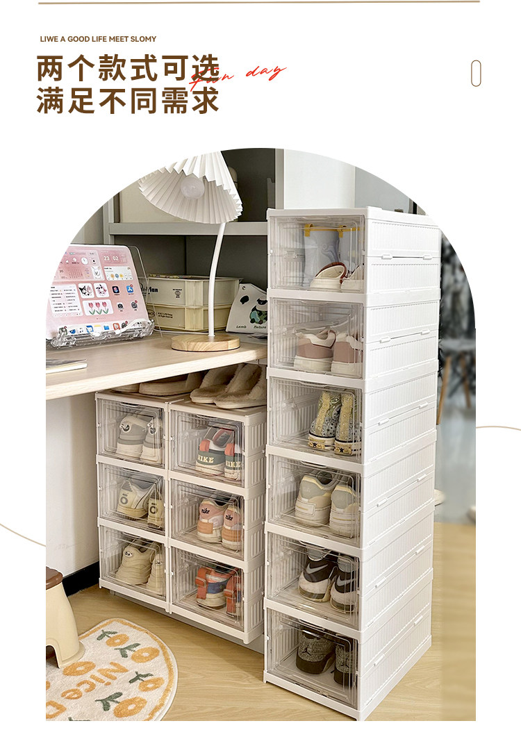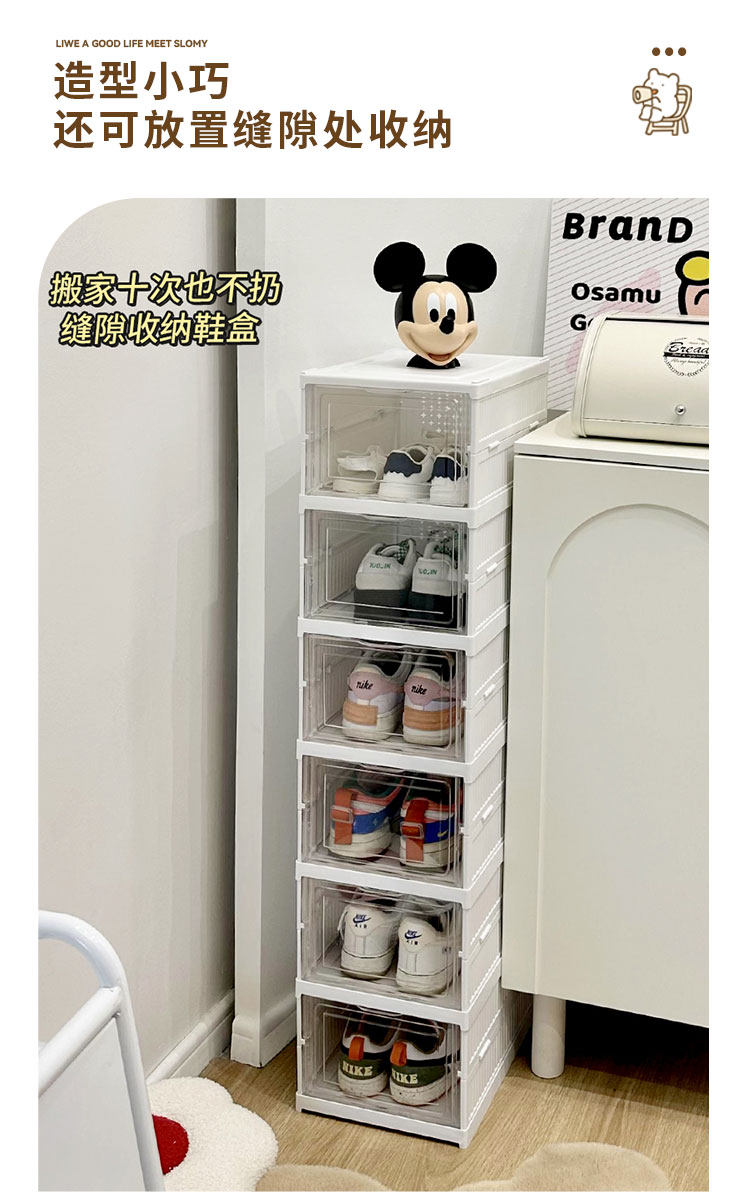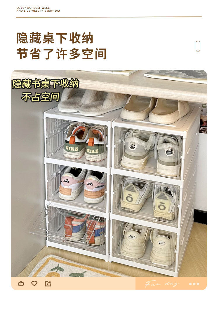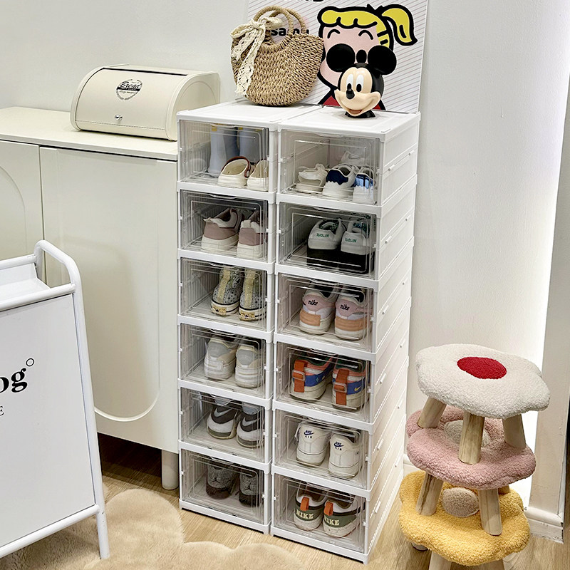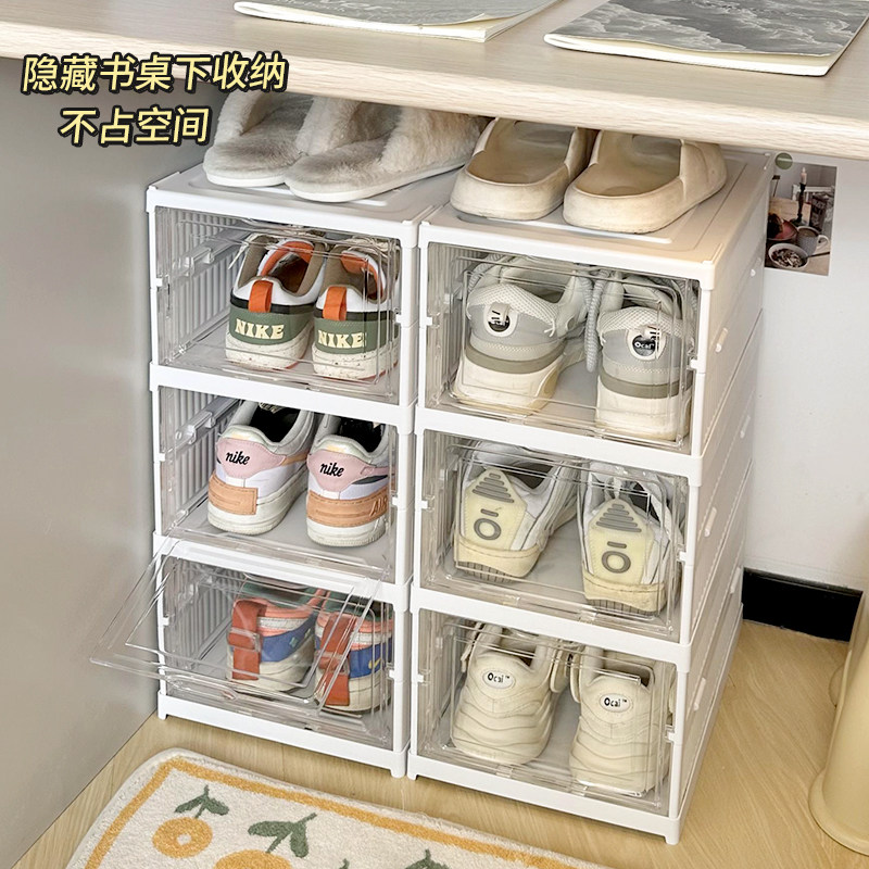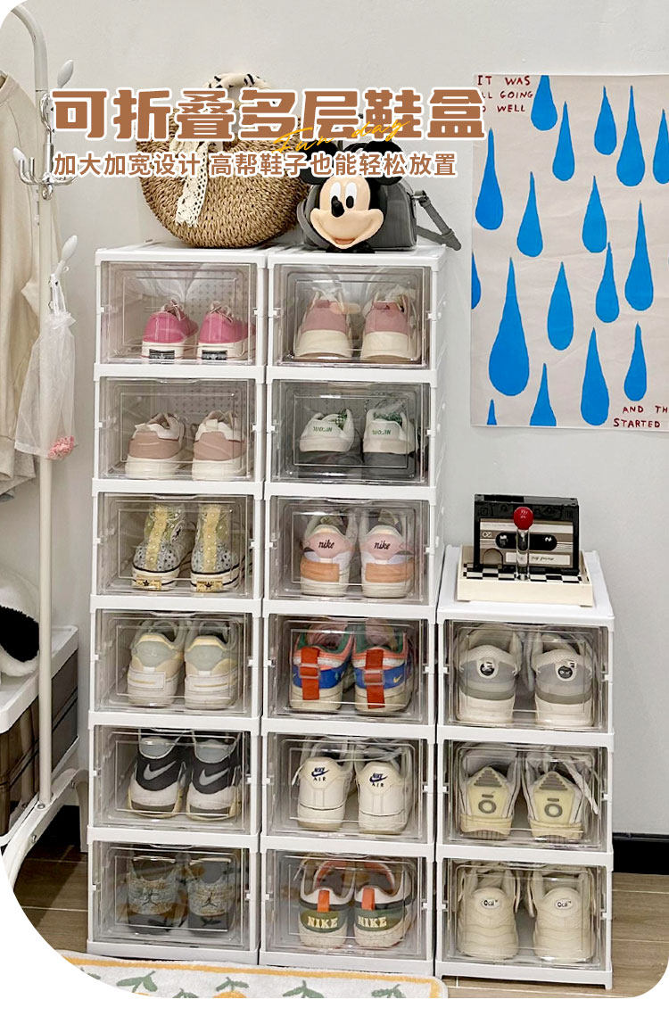 Прозрачная ящик для хранения обувной коробки для домашнего складного флип-пылепроницаемости и влажно-защищенного в общежил.