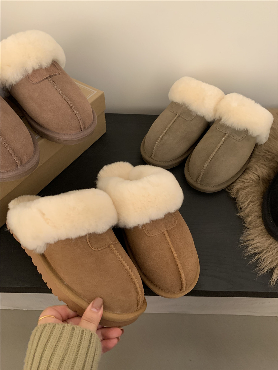 Кожаные короткие сапоги на платформе, утепленные ботинки, тапочки