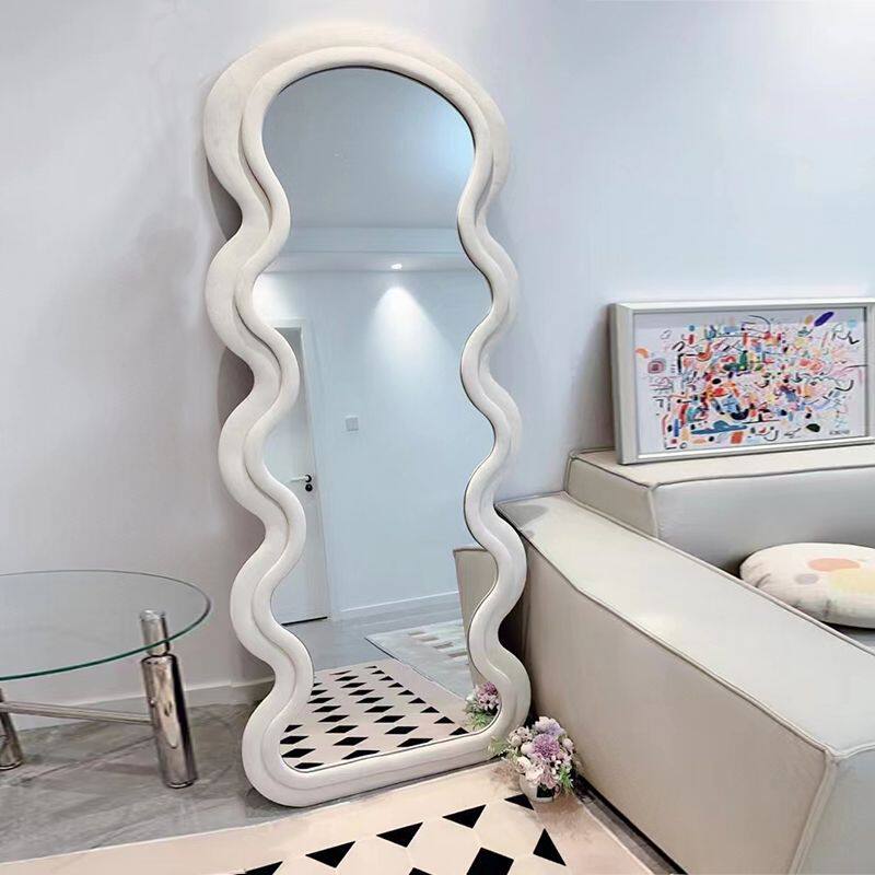 Волновое зеркало полное -куболовное зеркало дома вдохновение, кремовая ветер одежда для одежды для заправки