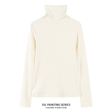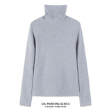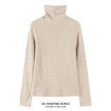 Приятный телу демисезонный лонгслив, трикотажный свитер, футболка, высокий воротник, коллекция 2023, изысканный стиль