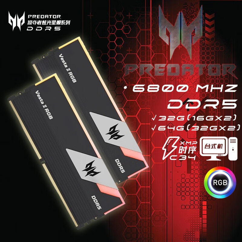 Память для настольных ПК Acer Predator Lingshuang/Dazzle Starship 6000 16G 32G 48G 96G DDR5
