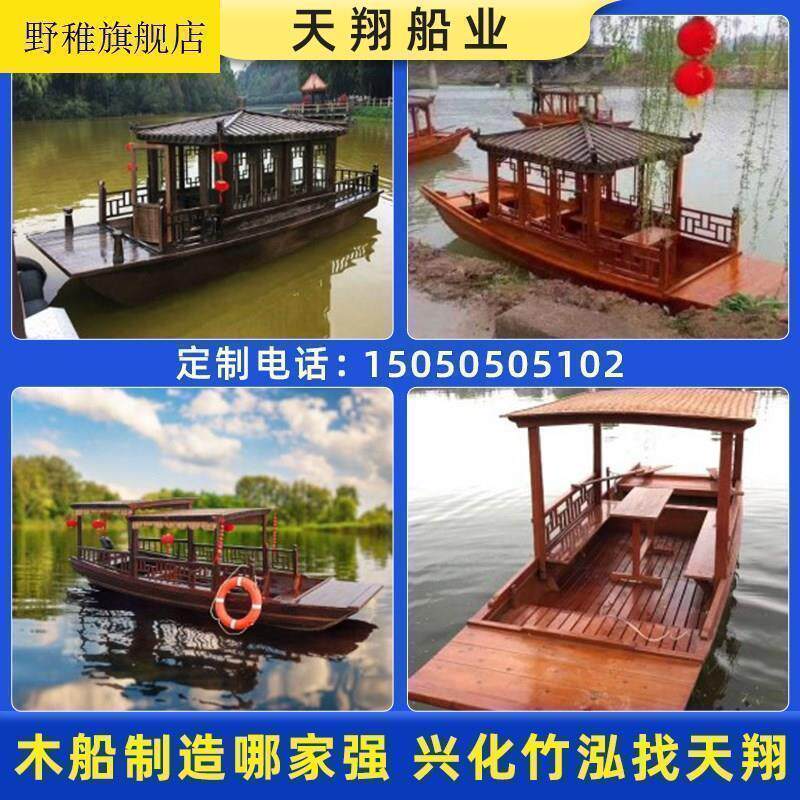 Деревянная лодка, рыбацкая лодка, электрическое весло-качалка из цельного дерева с ручной гребкой, лодка для общественного питания, живописный парк, старинный навес, расписная лодка, экскурсионный катер