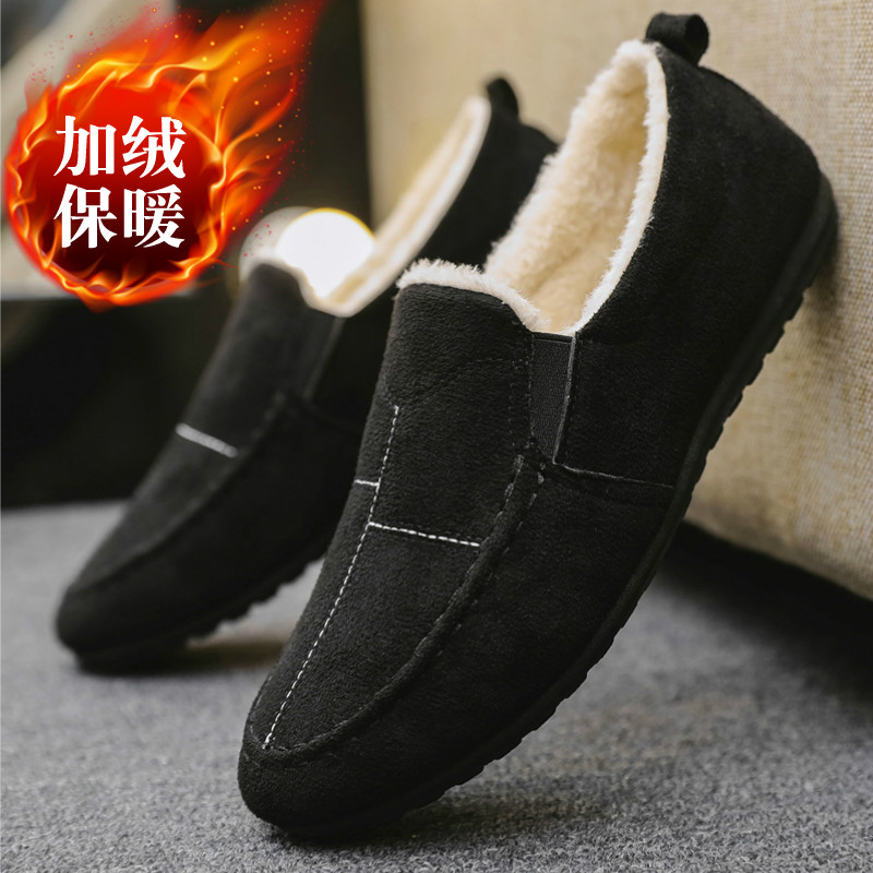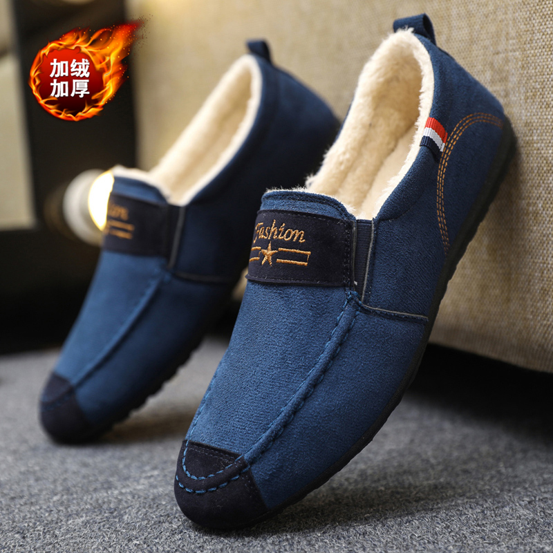 Мужские утепленные зимние туфли, универсальная тканевая повседневная обувь