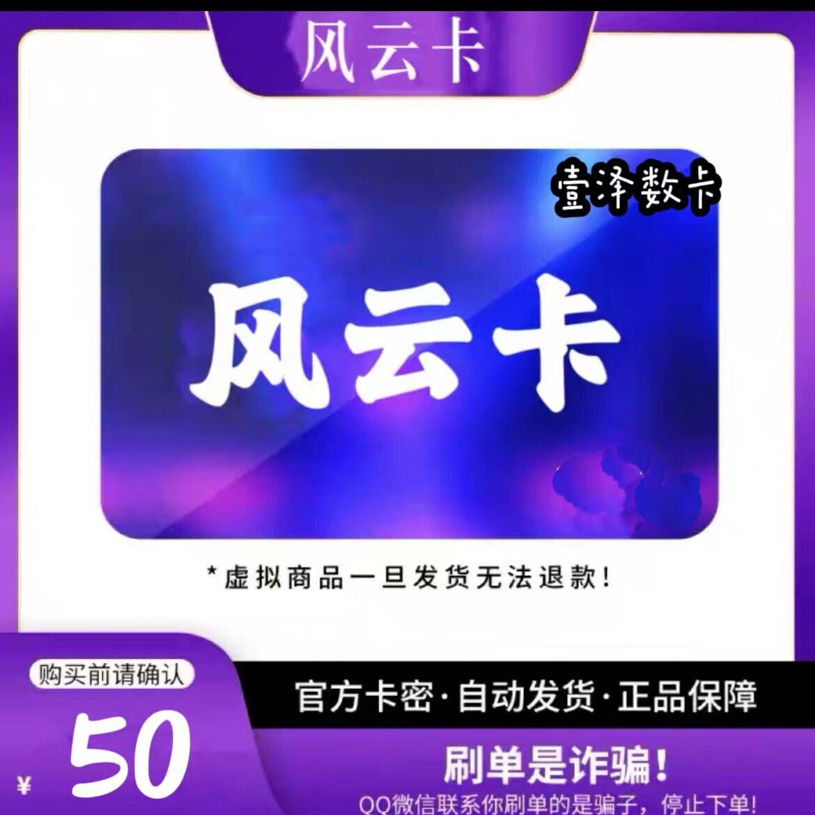 Fengyun Card Код карты на 50 юаней, возврат и обмен после продажи невозможен, доставка в течение нескольких секунд в течение дня, не считывайте заказы, остерегайтесь мошенничества