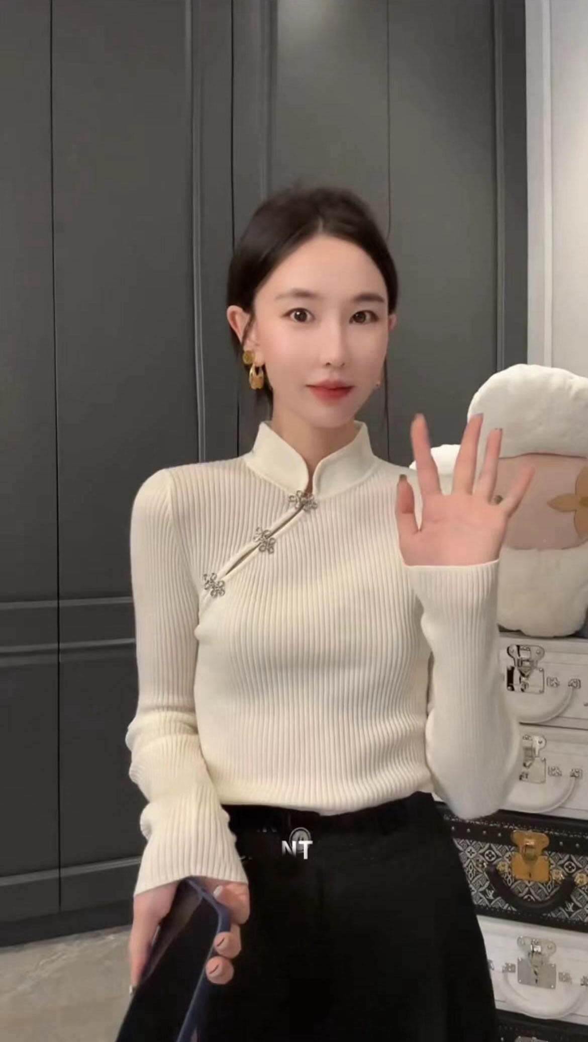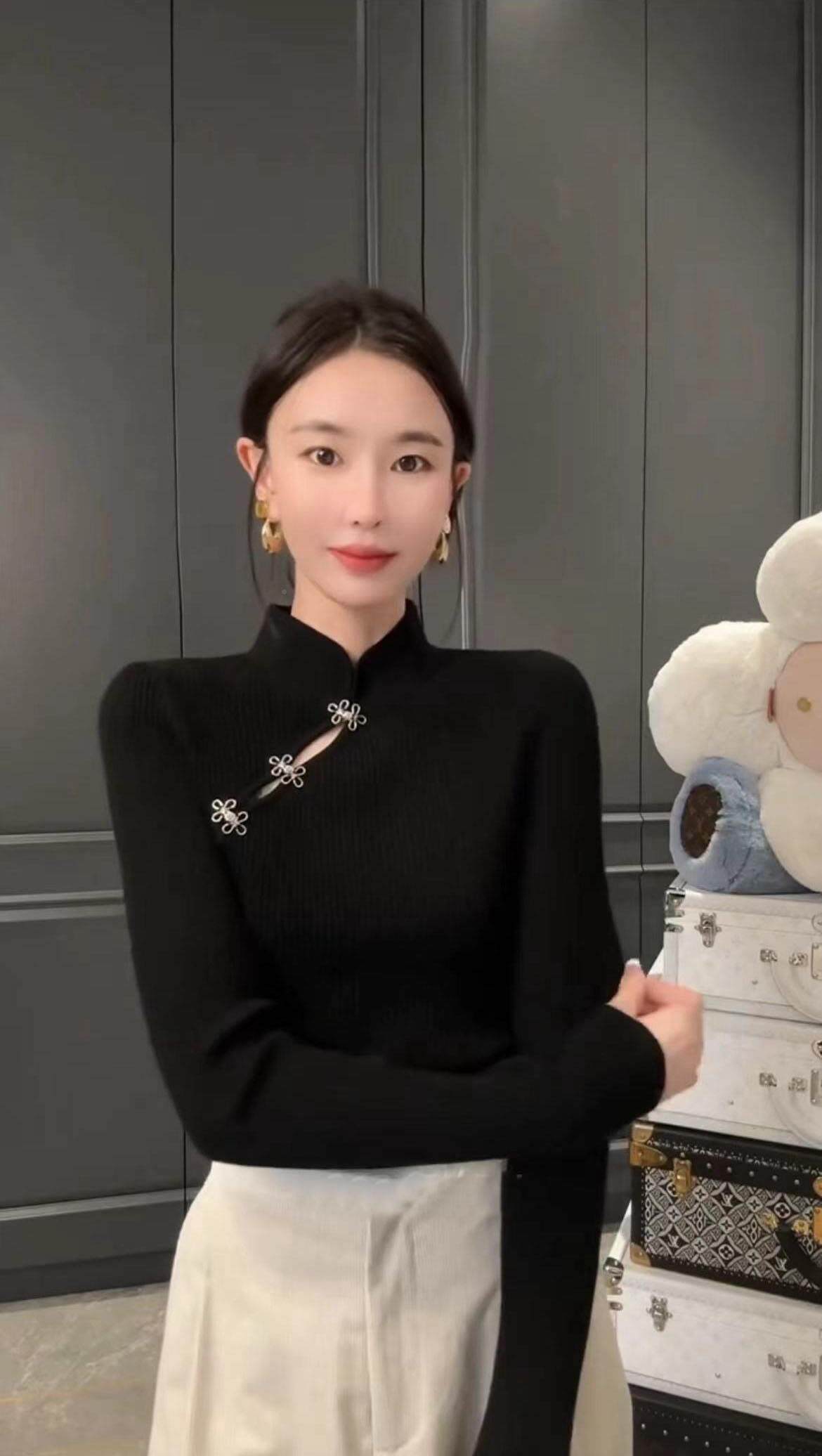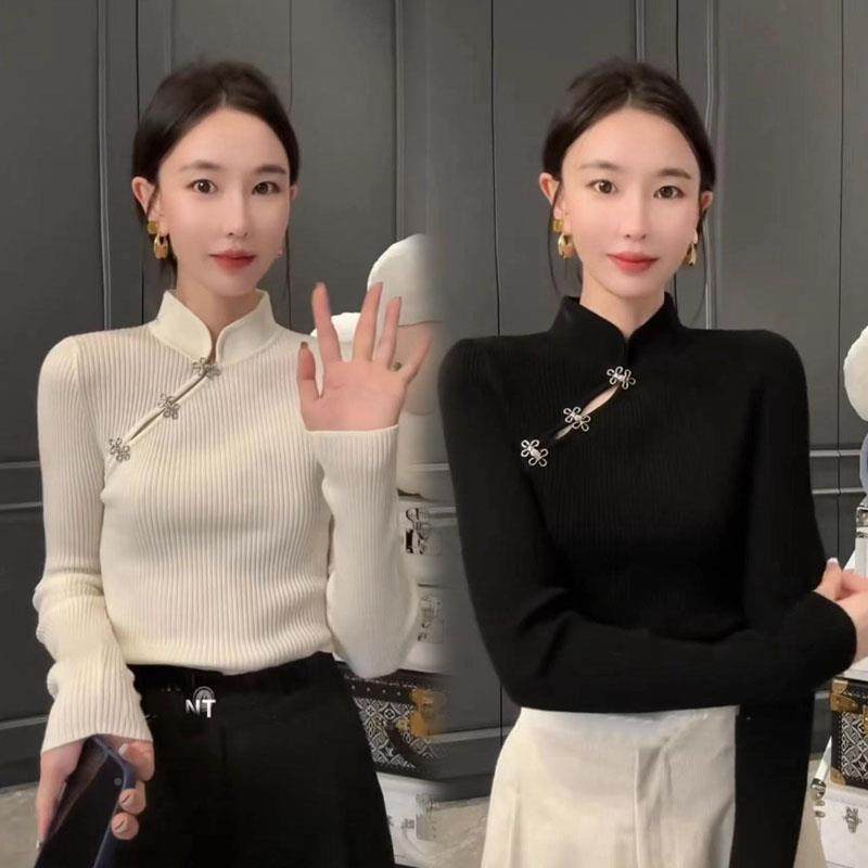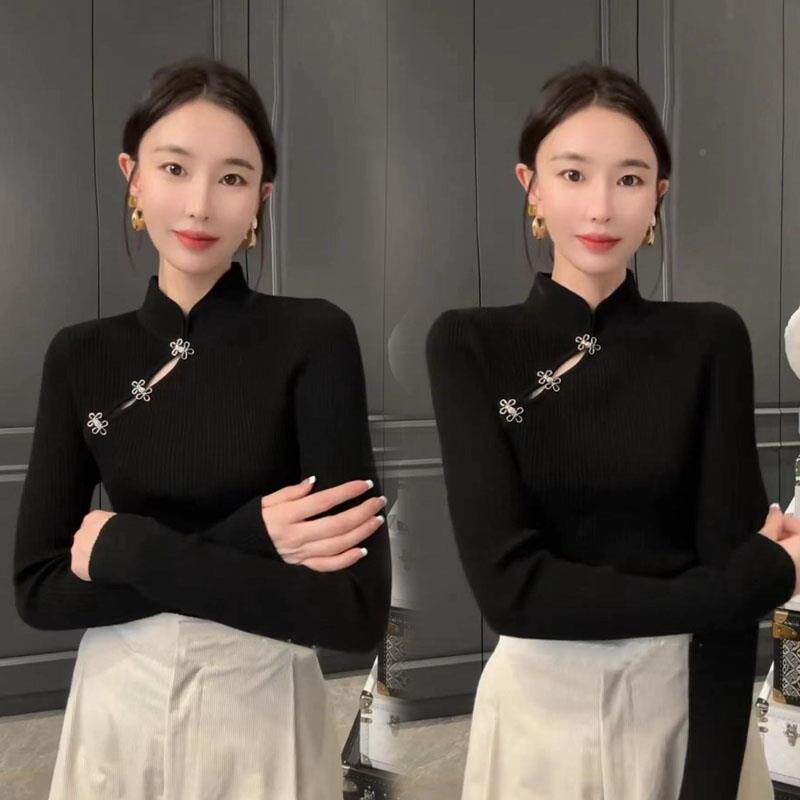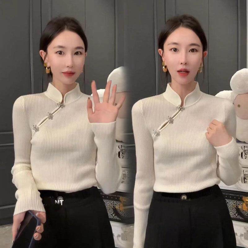 Демисезонный свитер, трикотажное термобелье, китайский стиль, коллекция 2023, облегающий крой