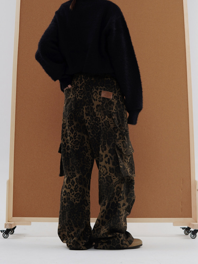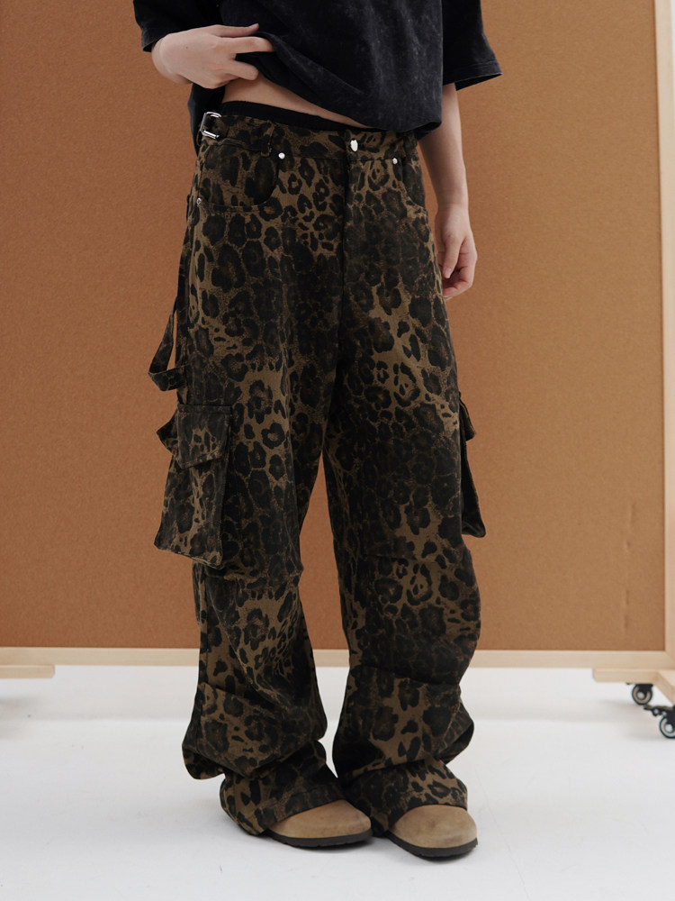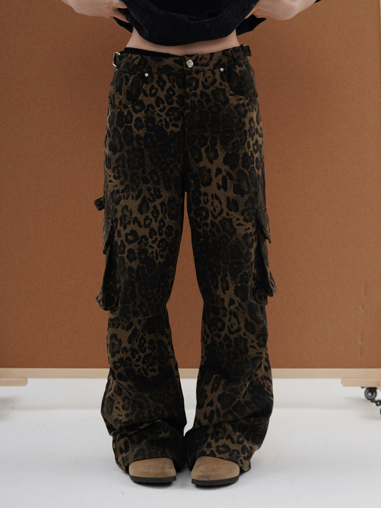 Kawakawa, американские ретро брюки с карманами и несколькими клапанами, комбинезоны с леопардовым принтом, мужские и женские уличные повседневные широкие брюки в европейском и американском стиле, хип-хоп