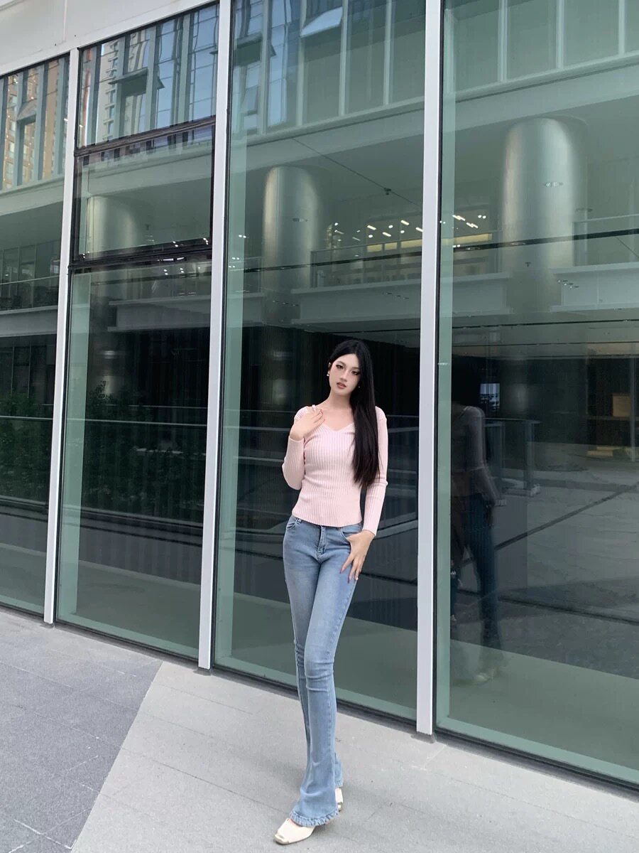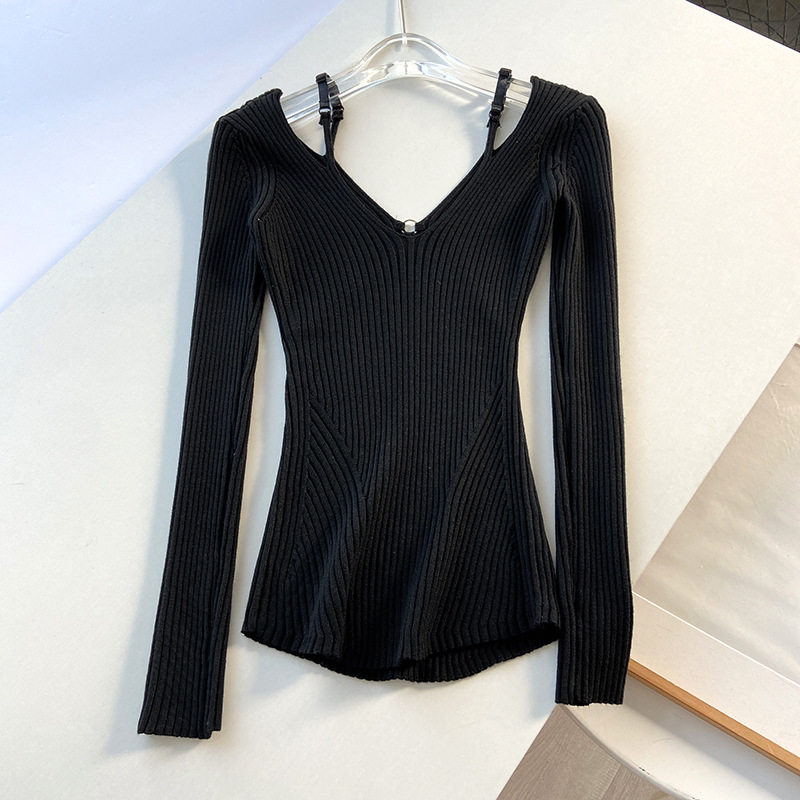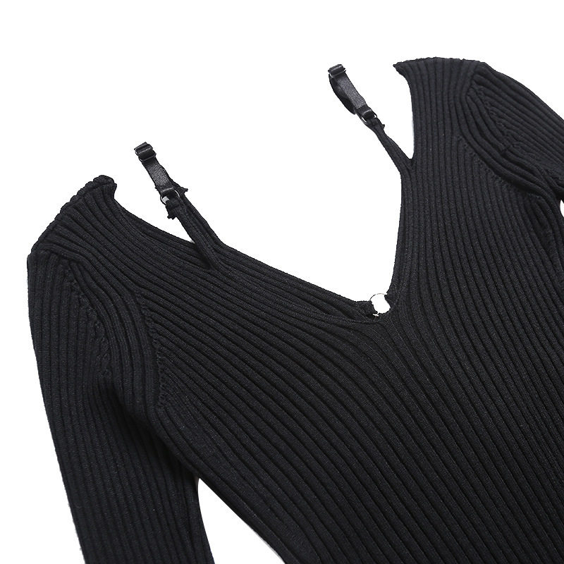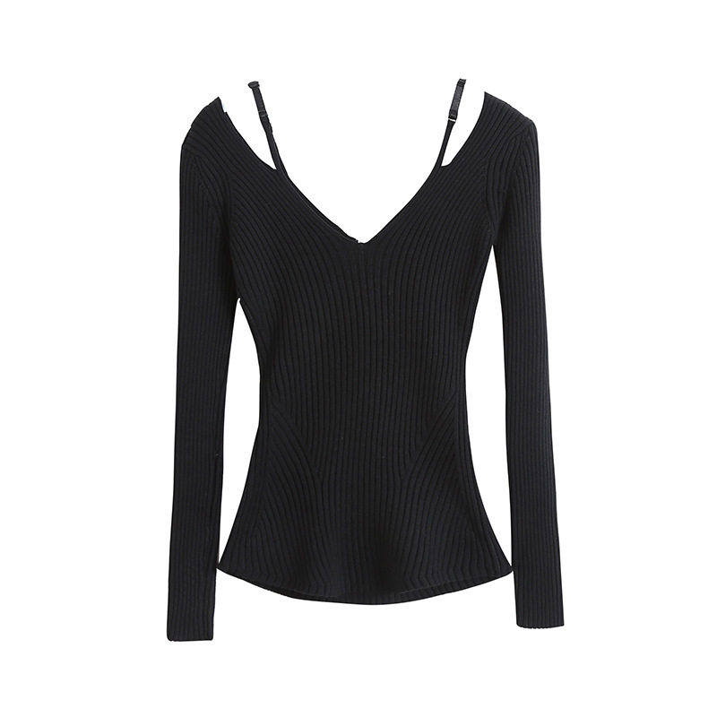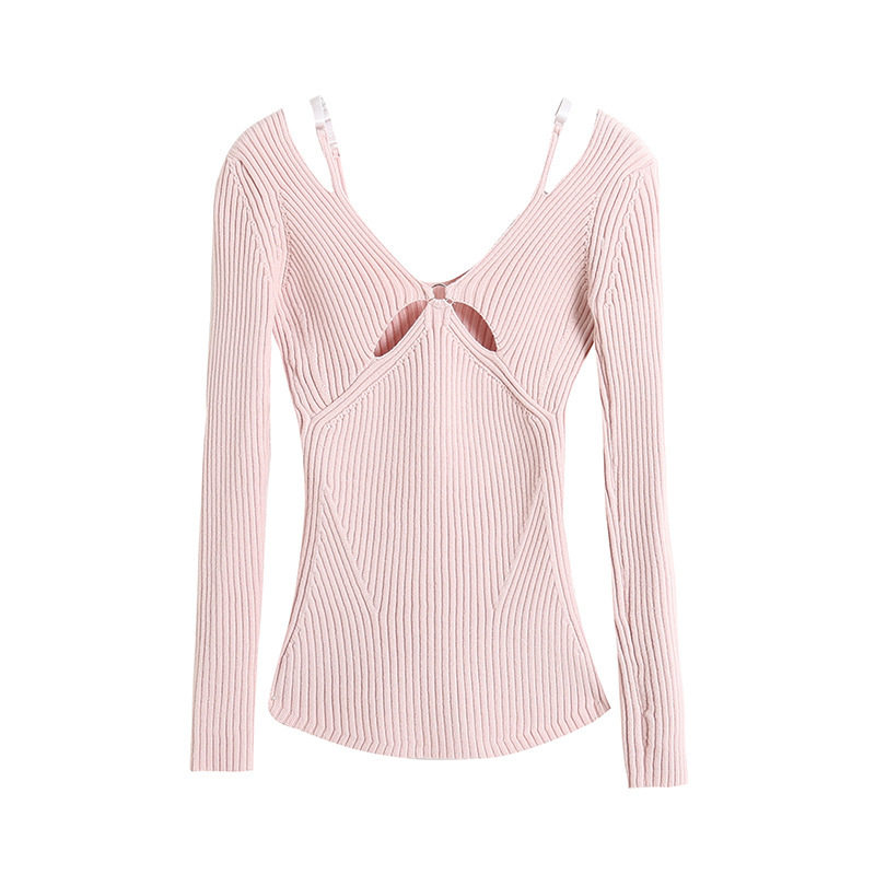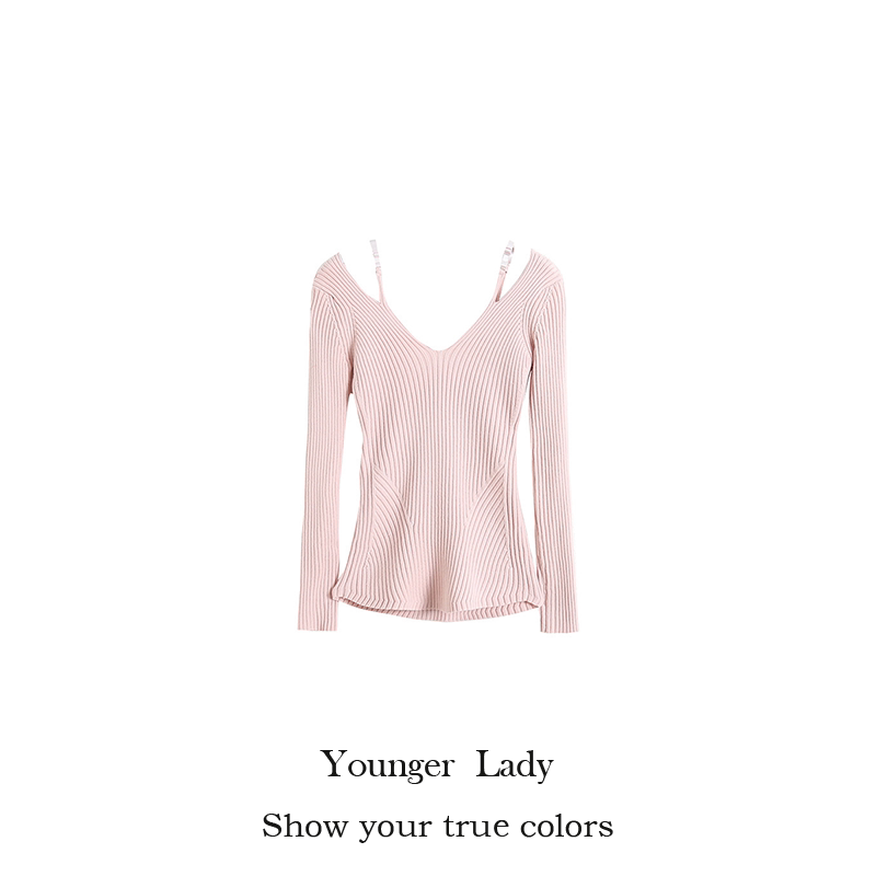 Практическая комната младшей леди Пей Сюжхи То же самое чистое желание Deep V Hollow, показывая тонкие поддельные два выключенных свитера
