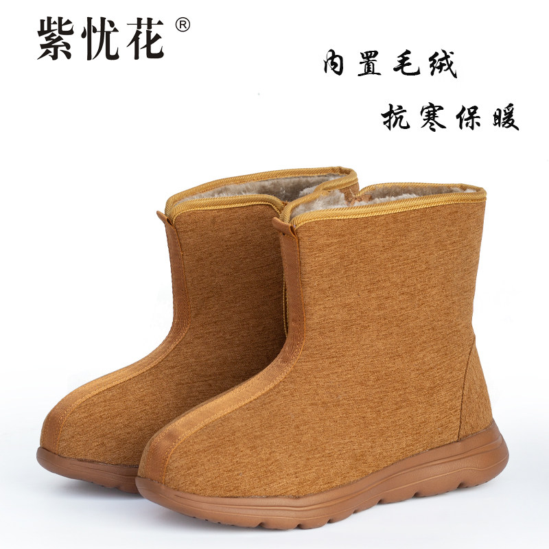 紫忧花 Высокие туфли-монки, зимние туфли-монки из хлопка, теплые и бархатные, нескользящие туфли-монки для мужчин и женщин, ботинки-монки