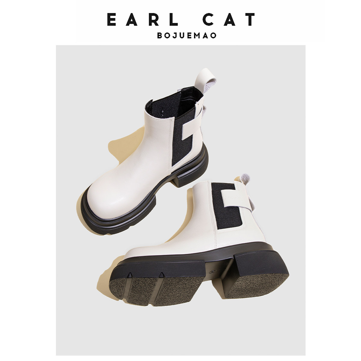 伯爵猫 Универсальные демисезонные челси на платформе, высокие короткие сапоги для отдыха, из натуральной кожи