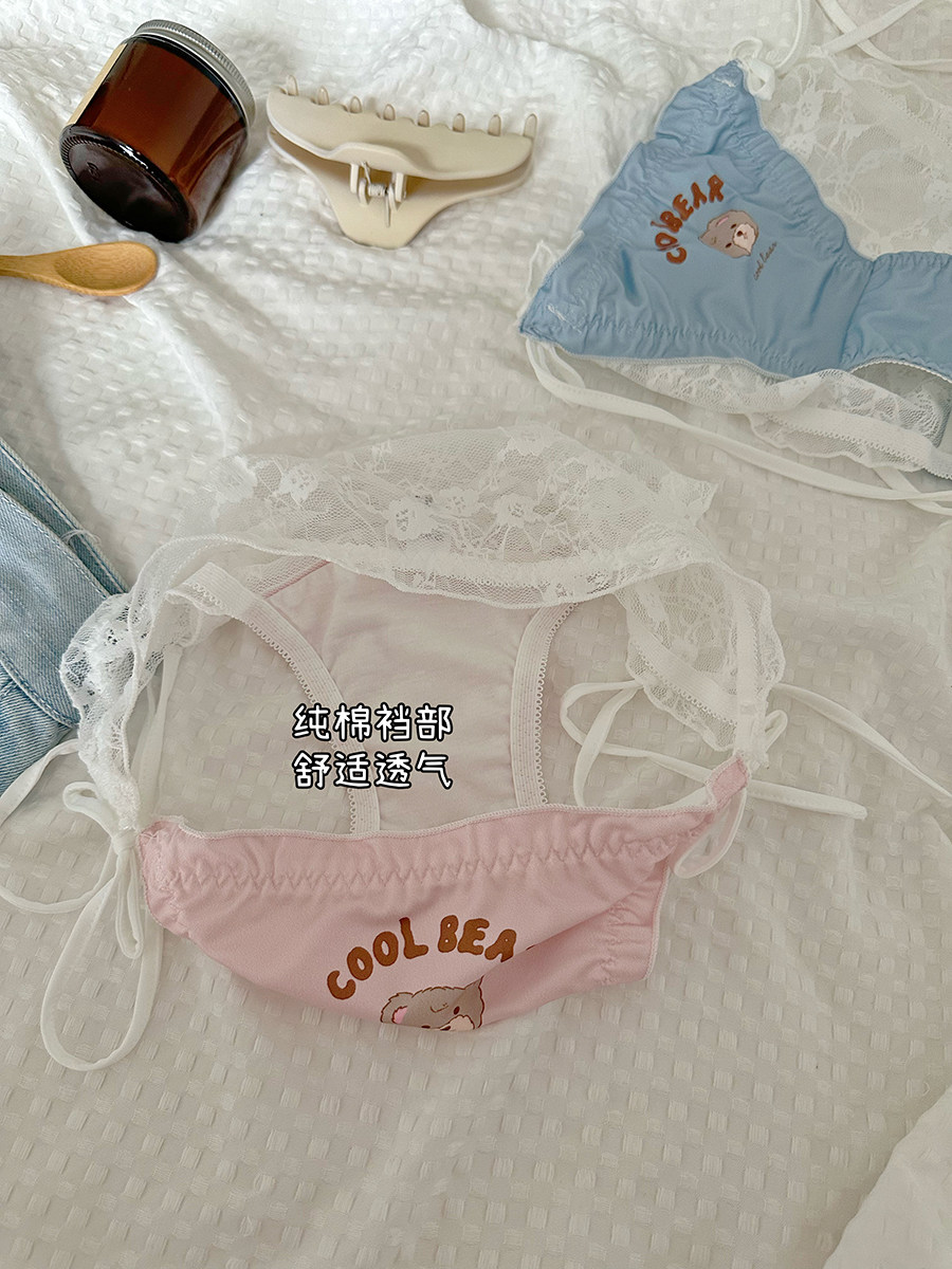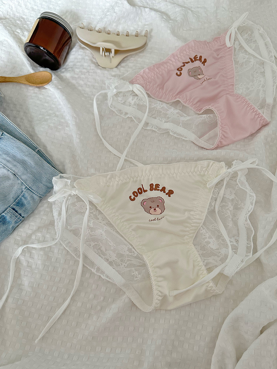 Крутой медведь кружево шнурок, сексуальное, чистое и сексуальное с высоким разрезом кружевное белье для женщин, чисто хлопковые девушки 2024 Новый