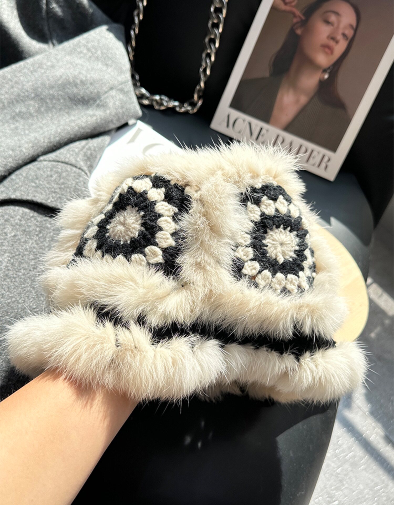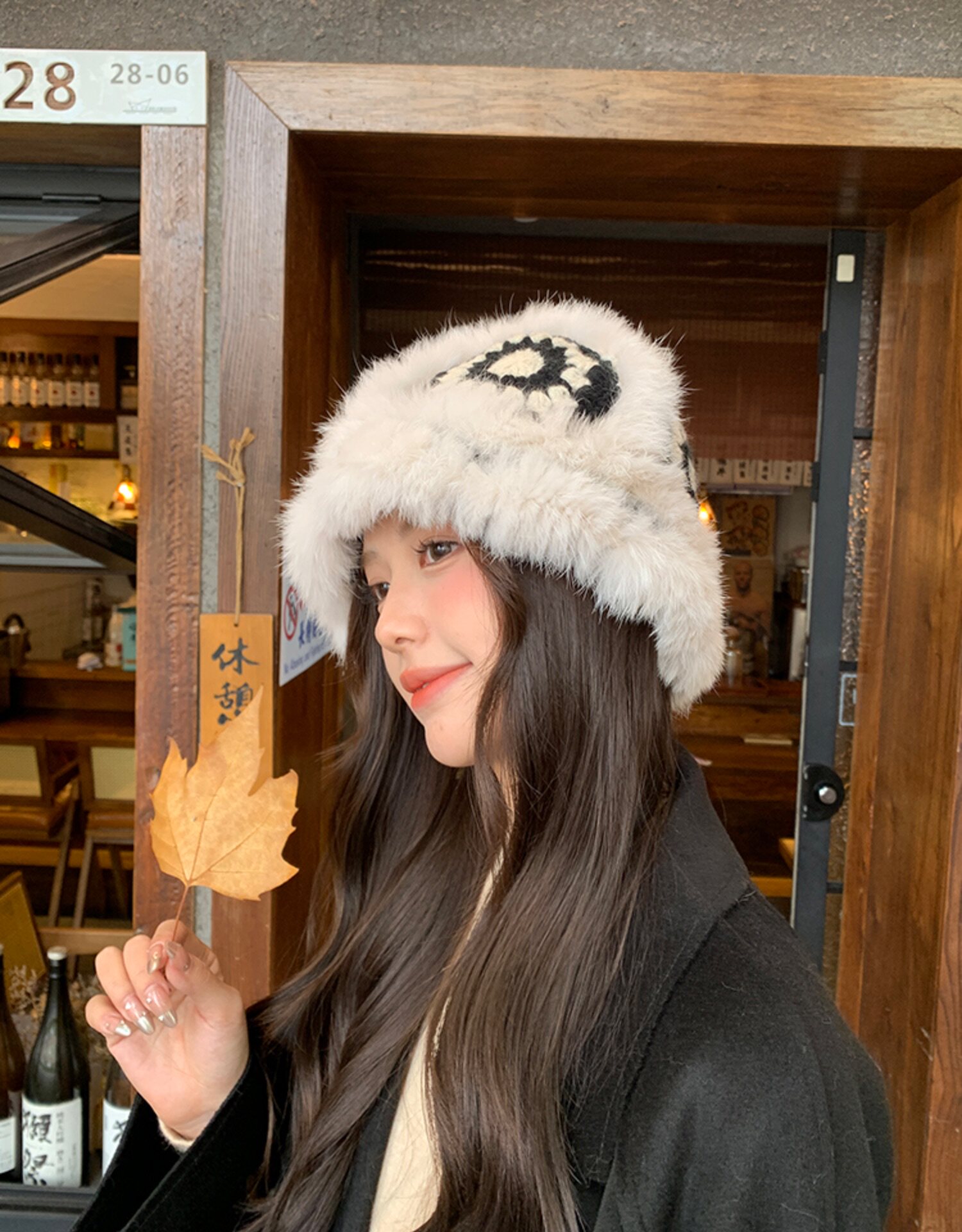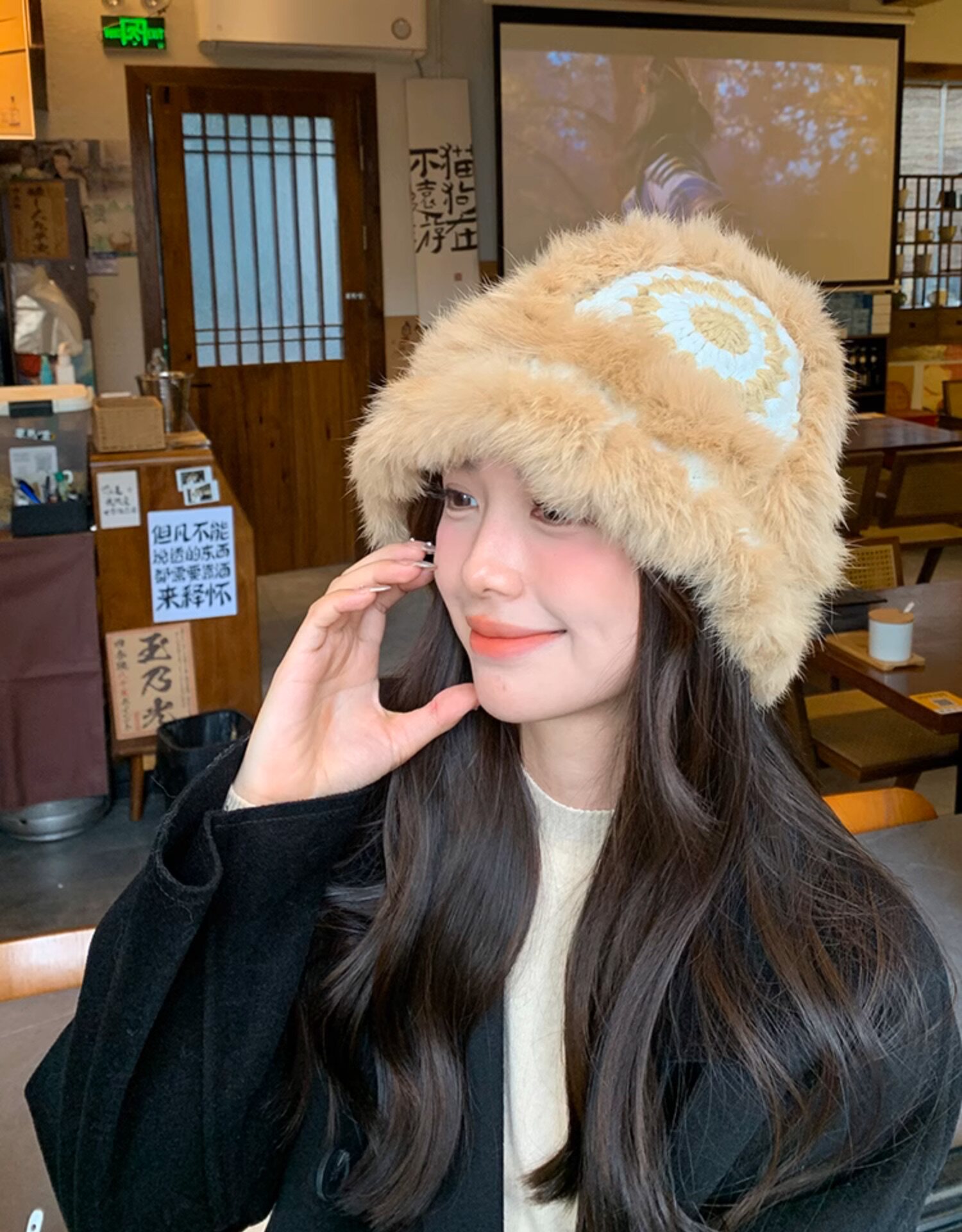 Трикотажная бархатная демисезонная милая шерстяная шапка