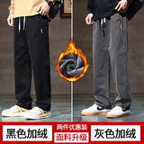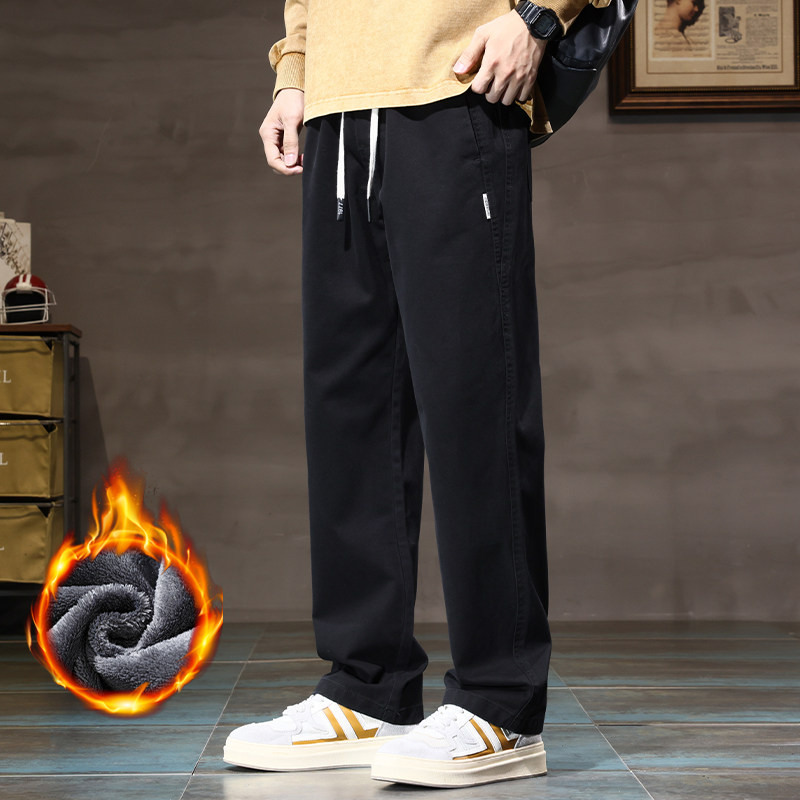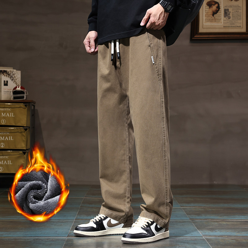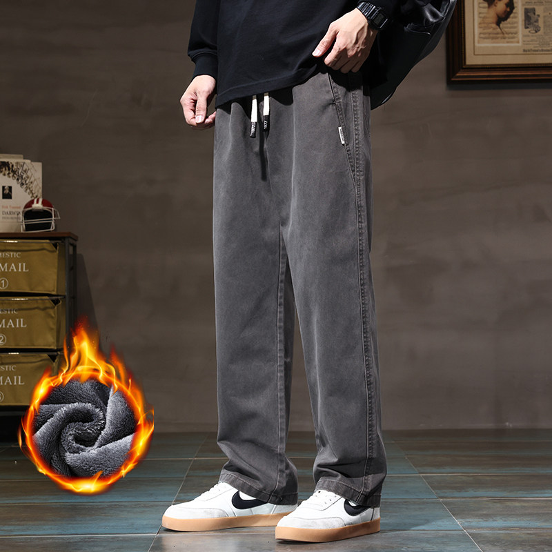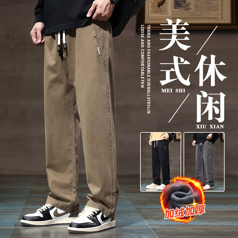 Хлопковые утепленные трендовые штаны, в американском стиле, свободный прямой крой