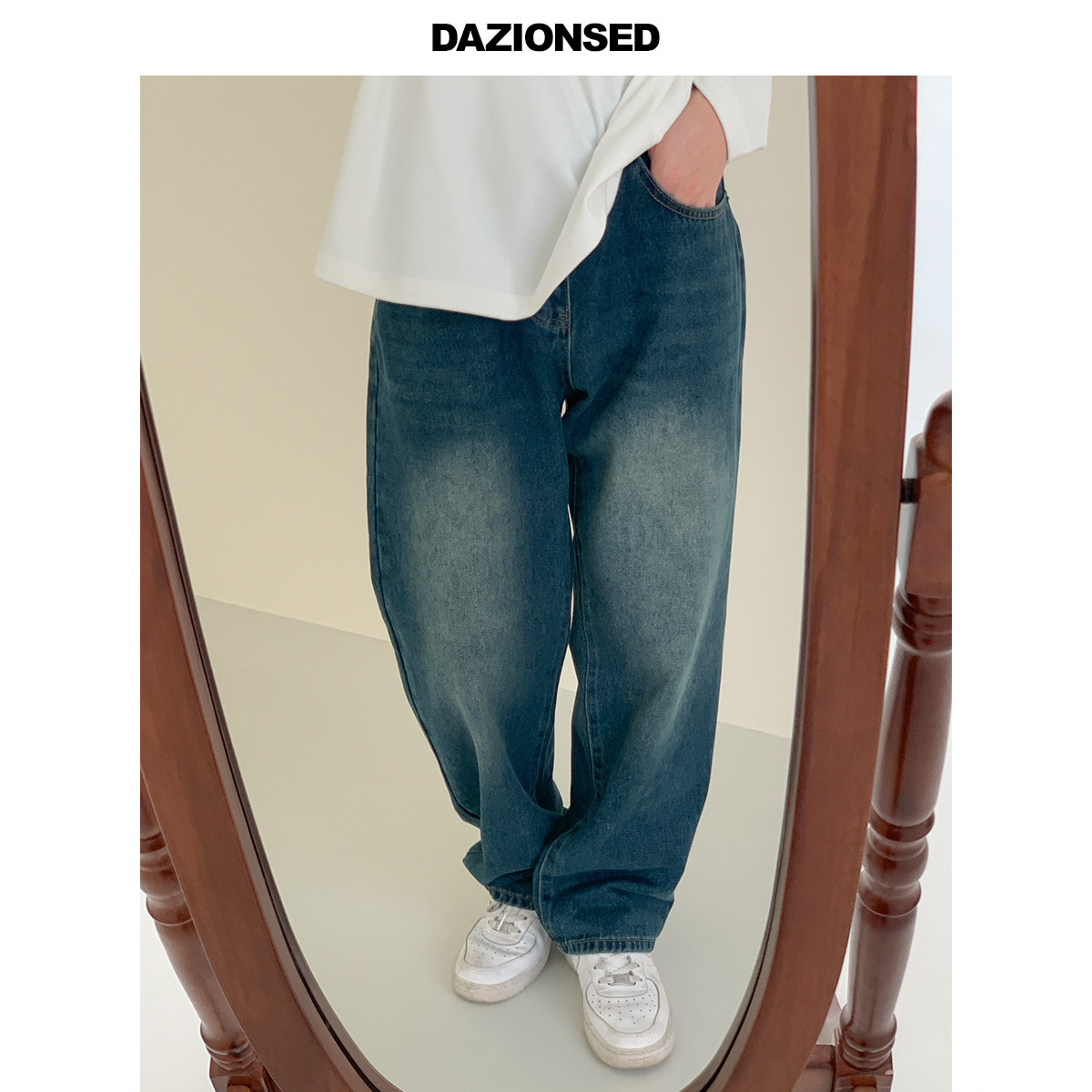 Ретро прямые свободные джинсы, штаны, джинсы с начесом, повседневные брюки, осенние, в американском стиле
