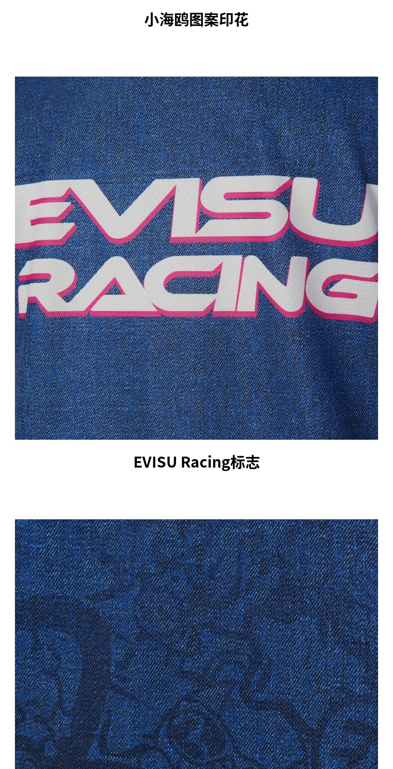 [Стиль знаменитостей] Мужская футболка EVISU KIZZU Racing Limited Edition с короткими рукавами и круглым вырезом