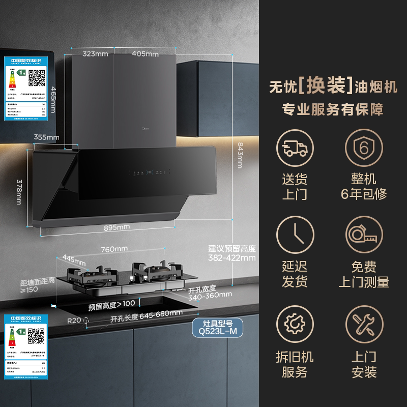 Midea Kitchen Range Hood, газовая плита для плита, набор газовой плиты капюшона Ja7