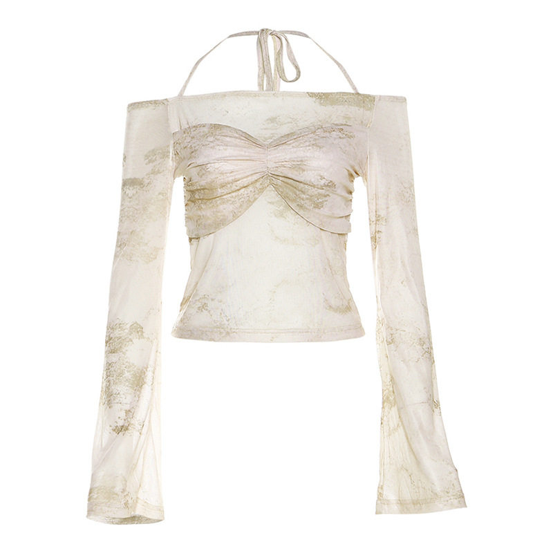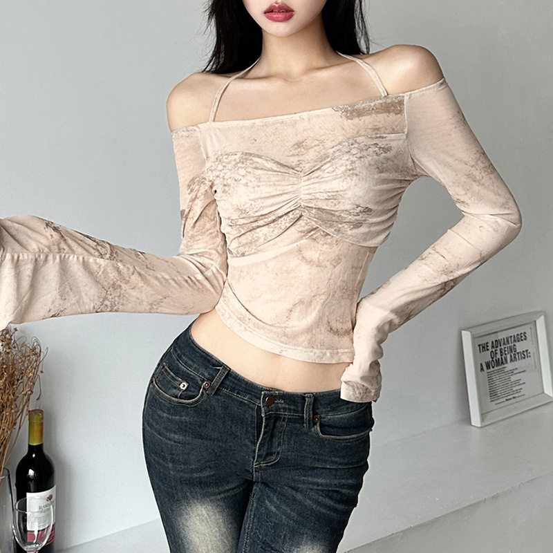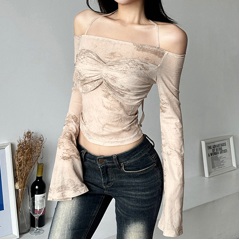 Комплект, небольшая дизайнерская короткая футболка, открытые плечи, тренд сезона