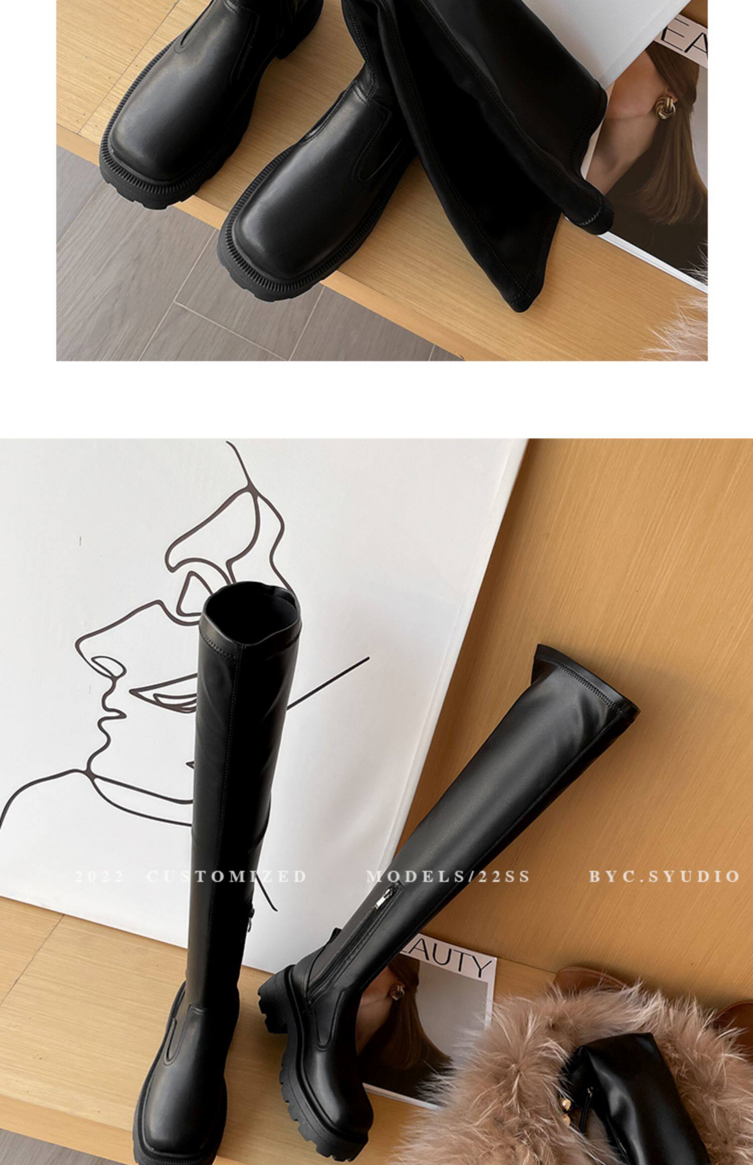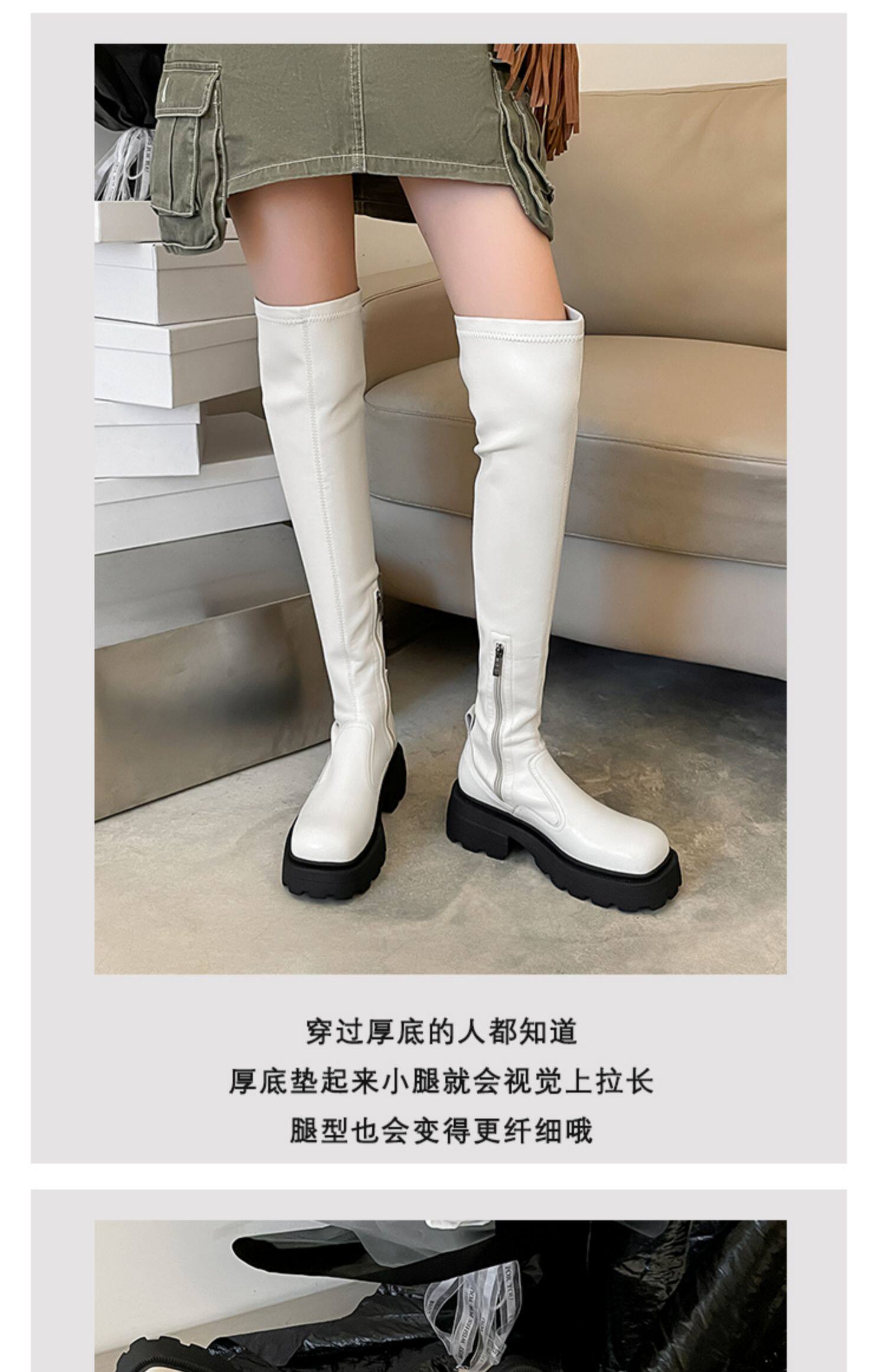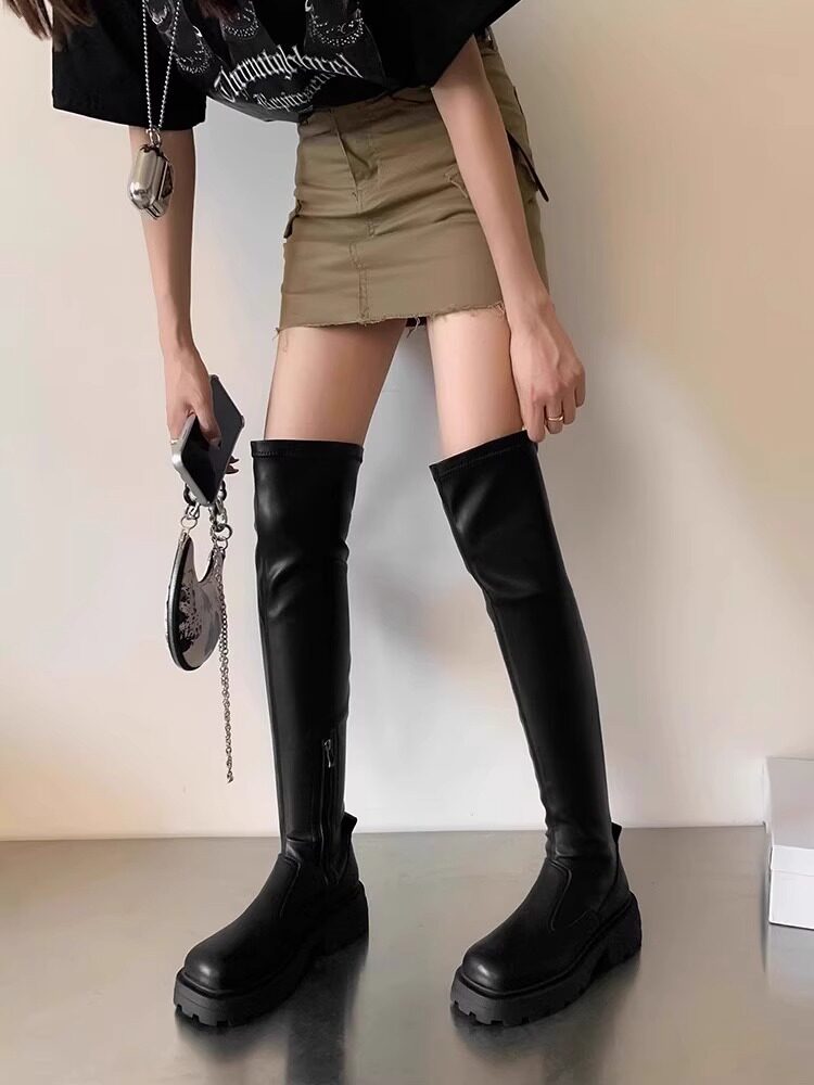 Демисезонные эластичные высокие сапоги на платформе, подходит для подростков, по фигуре