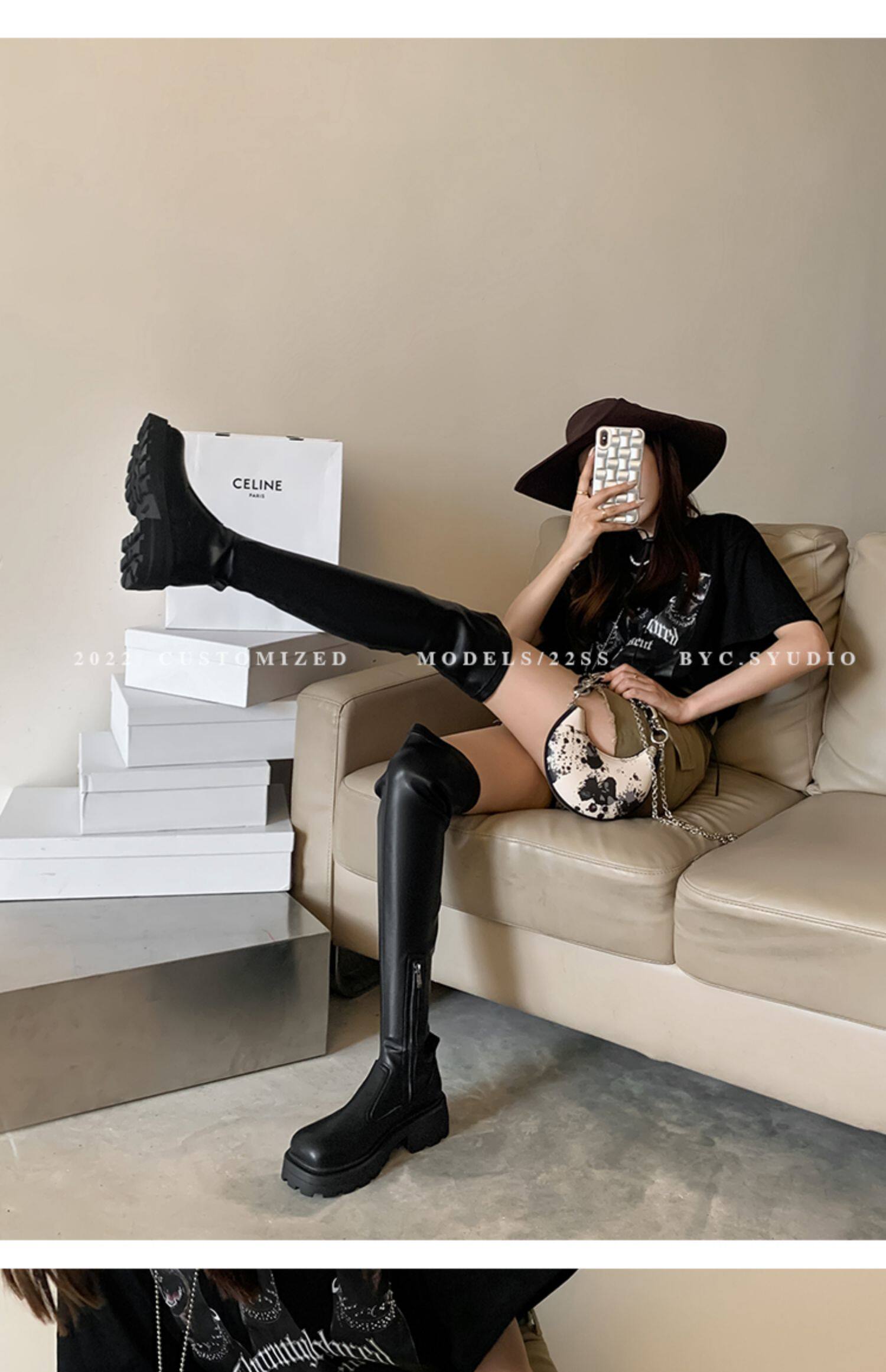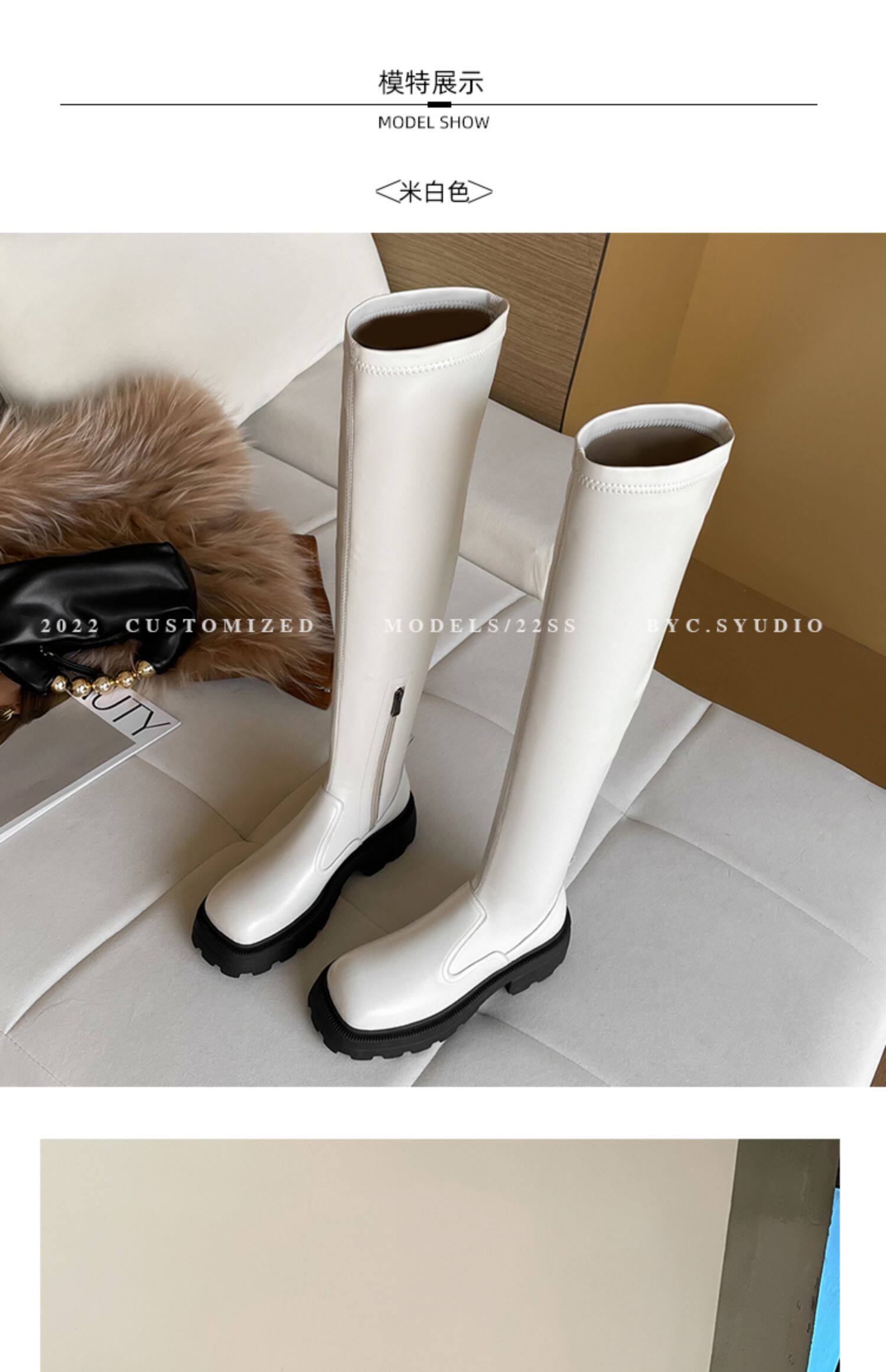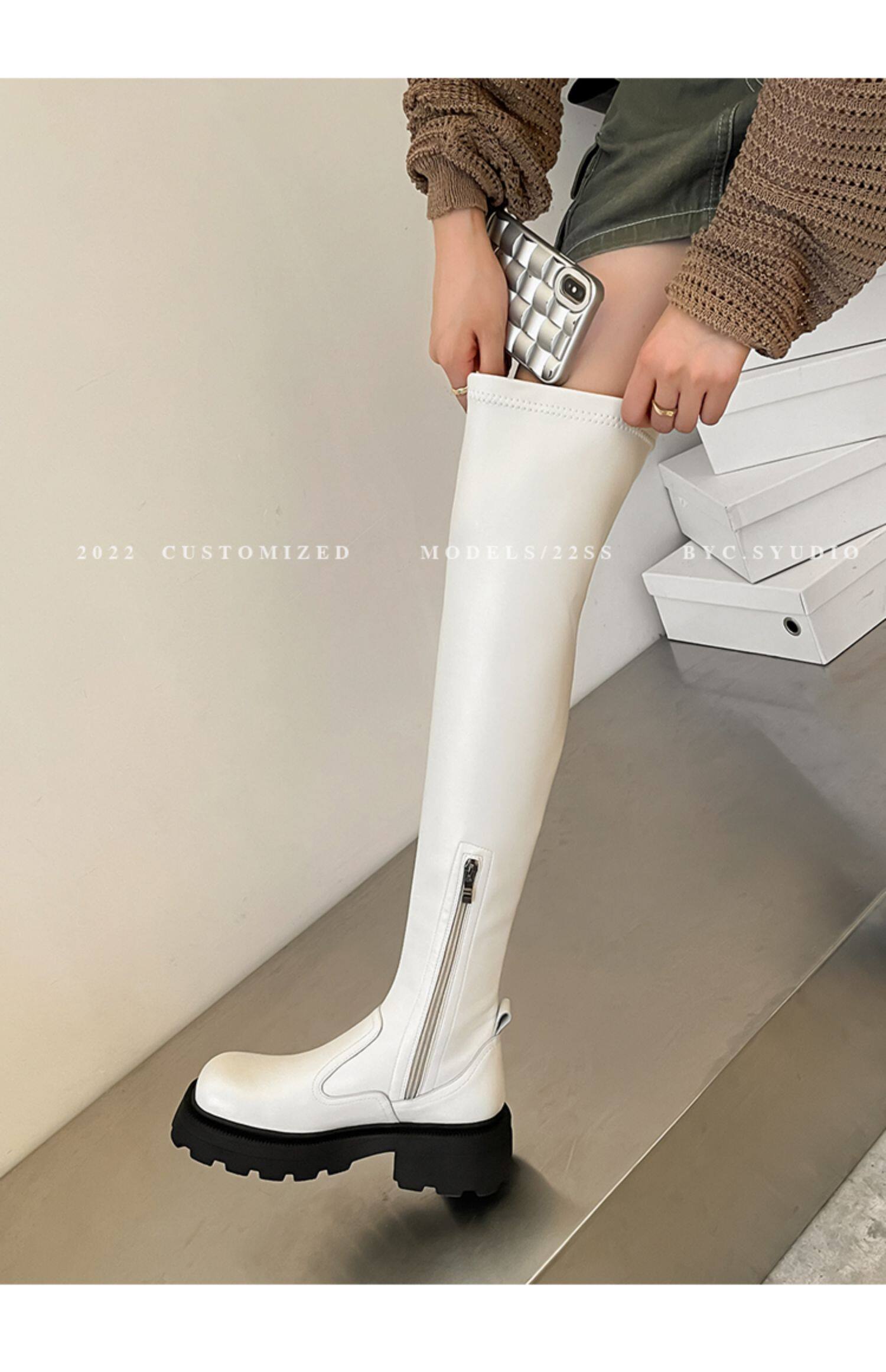 Демисезонные эластичные высокие сапоги на платформе, подходит для подростков, по фигуре