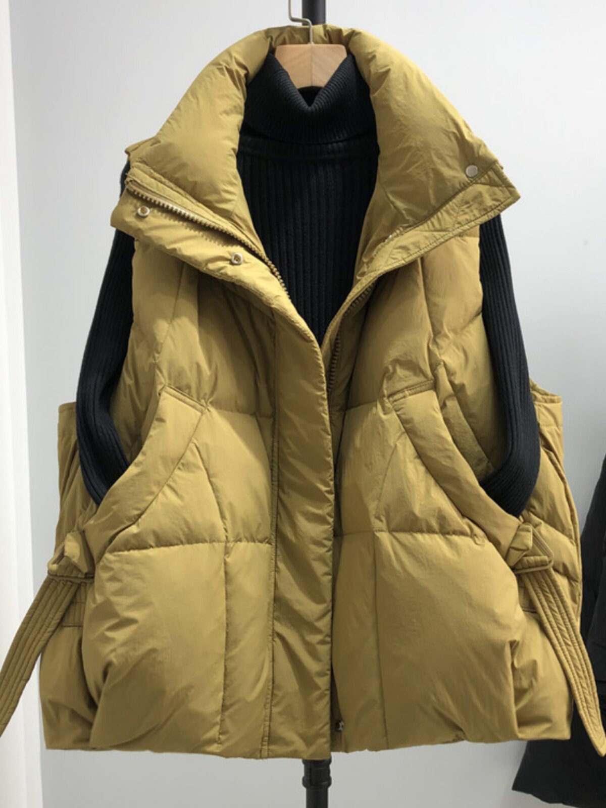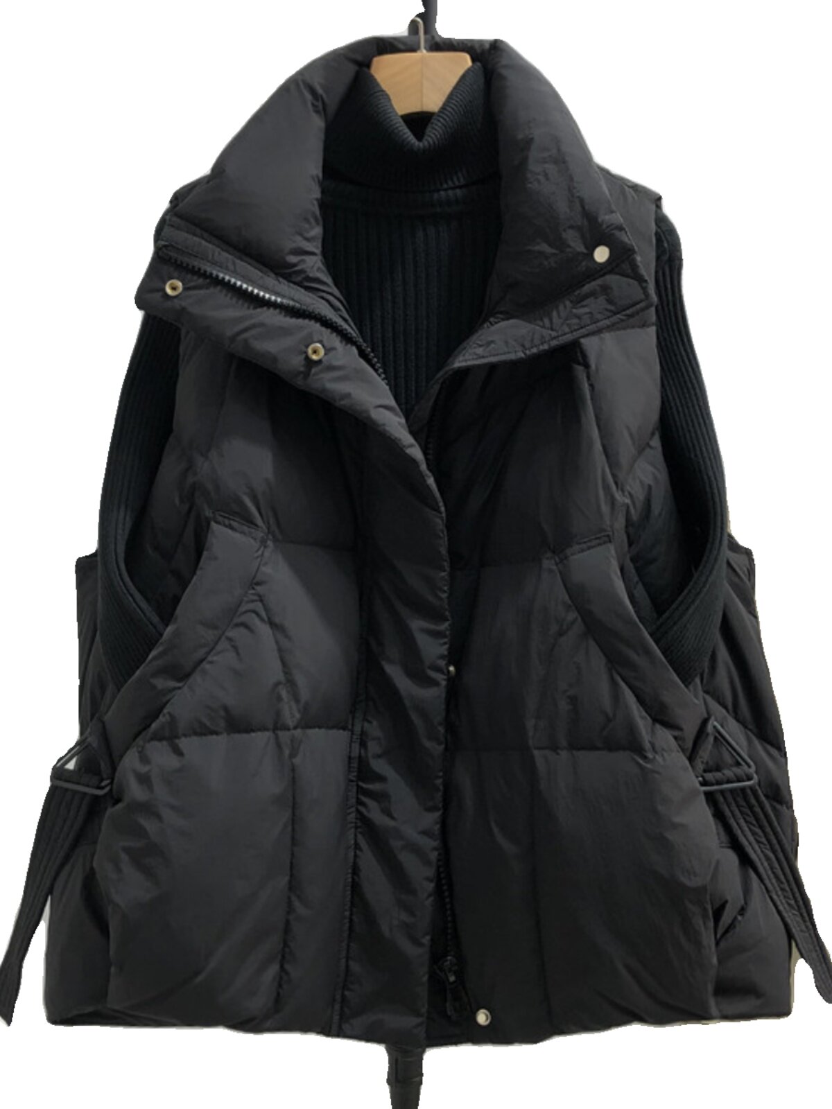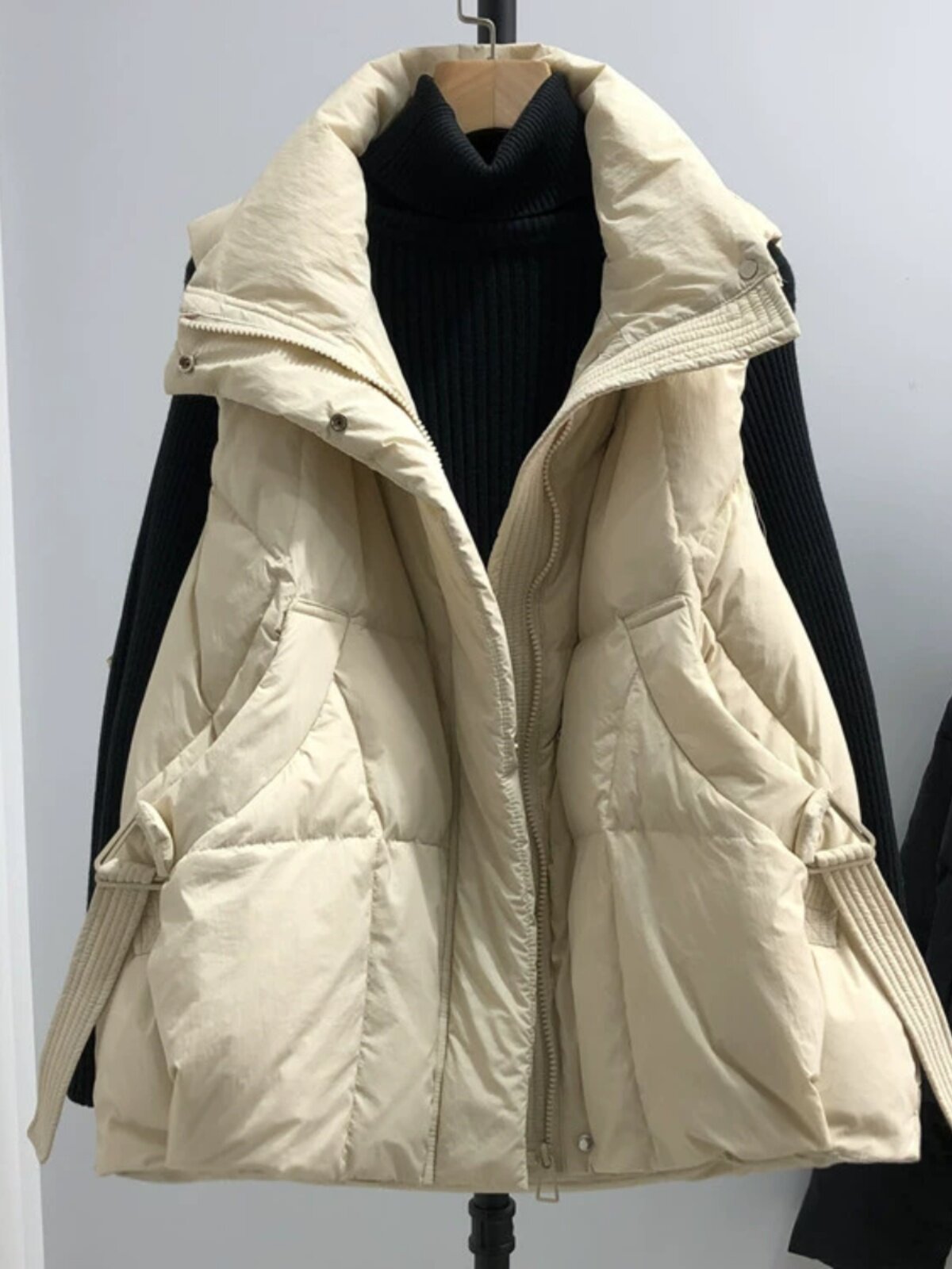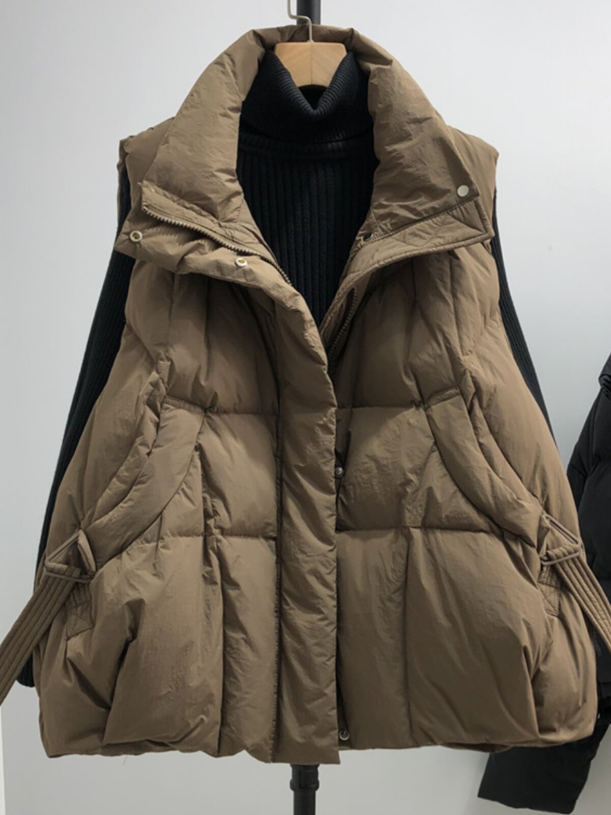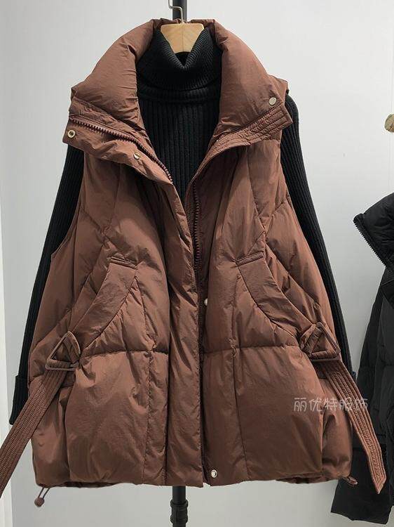 Пуховик, короткий жилет, осенняя модная майка топ, оверсайз, свободный крой, в западном стиле, утиный пух