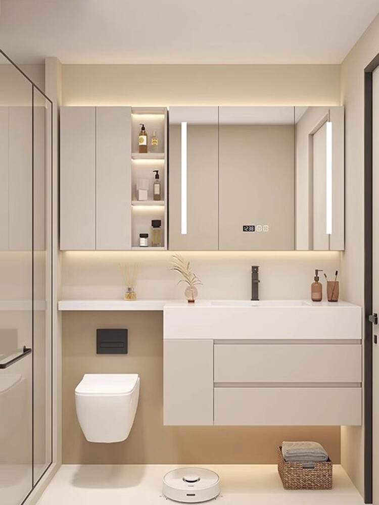 Кайли -каменная доска вместе бассейн в ванной комнате Комбинированное расширение туалета во время стирки пруда, настройка дубового зеркала