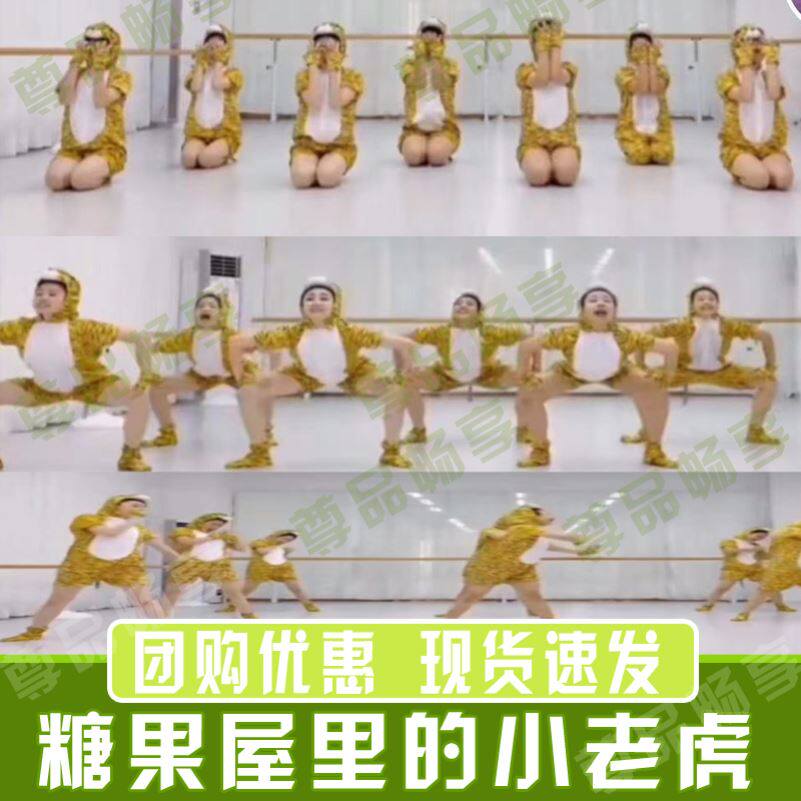 Маленький тигр в кондитерской доме исполняет милые детские танце