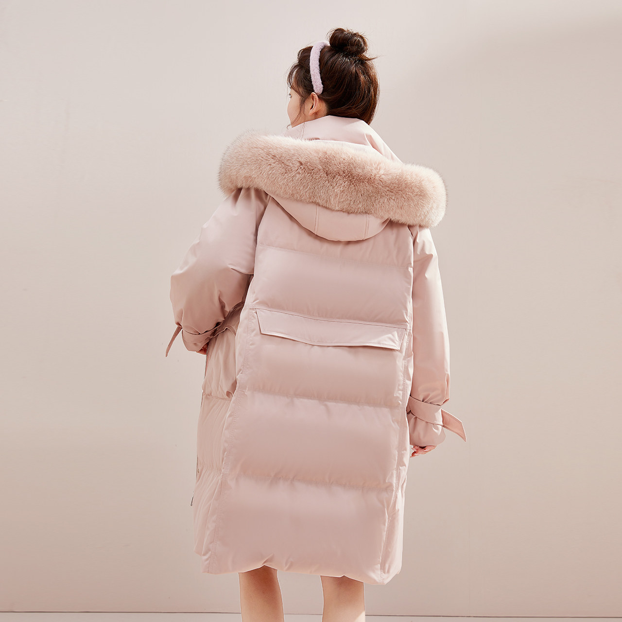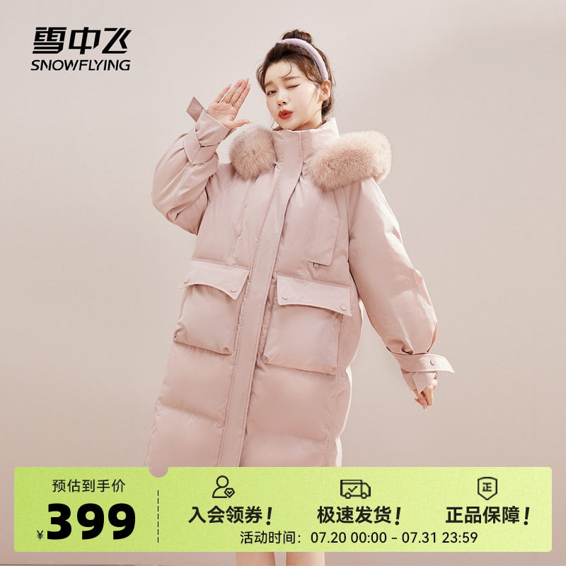 Snow Fly 2025 Весна женский женский корейский стиль силуэт макарон лиса мех воротник длинный вниз по сгущенной куртке